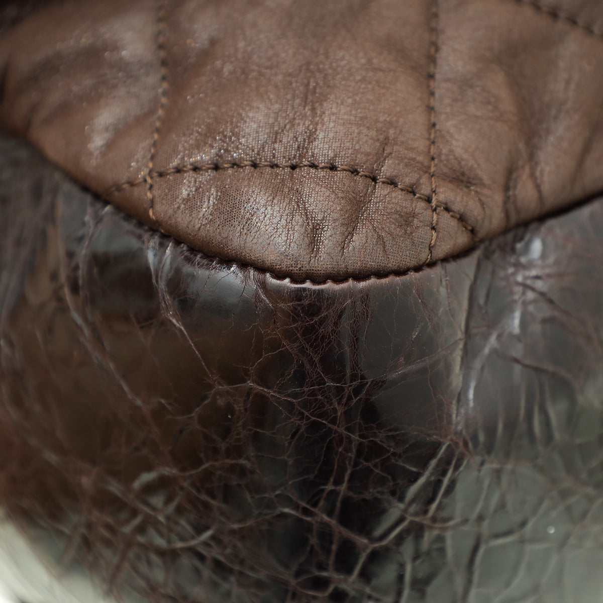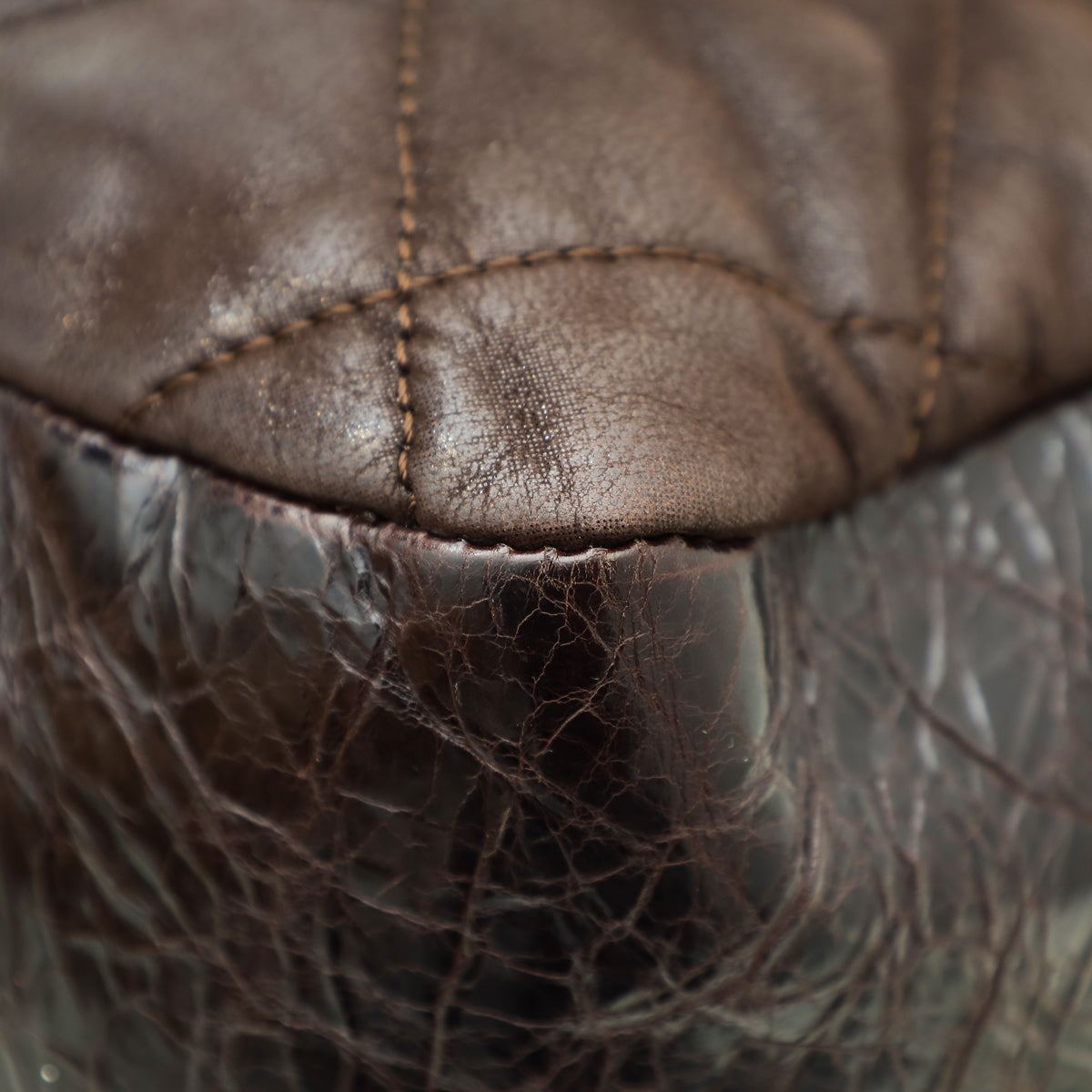 Material: Dark Brown Iridescent Leather and Calfskin Leather Trim
