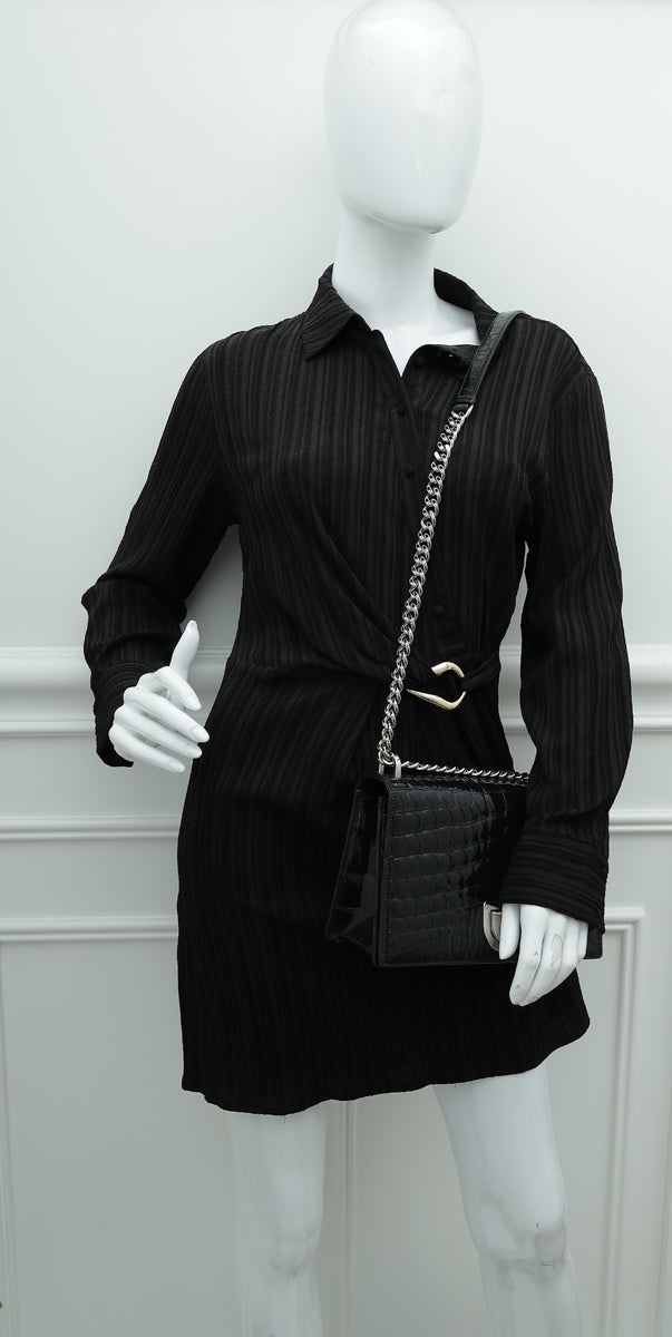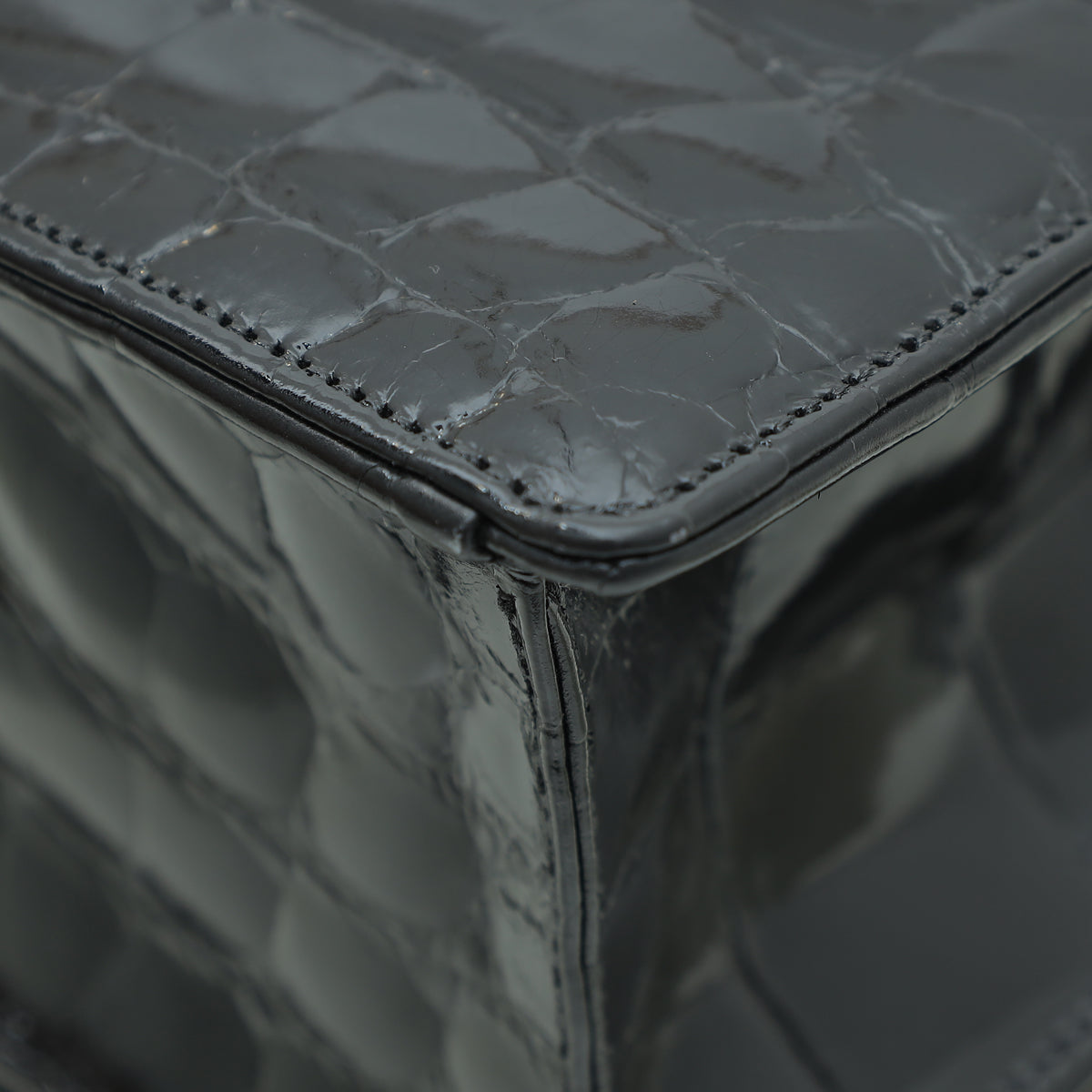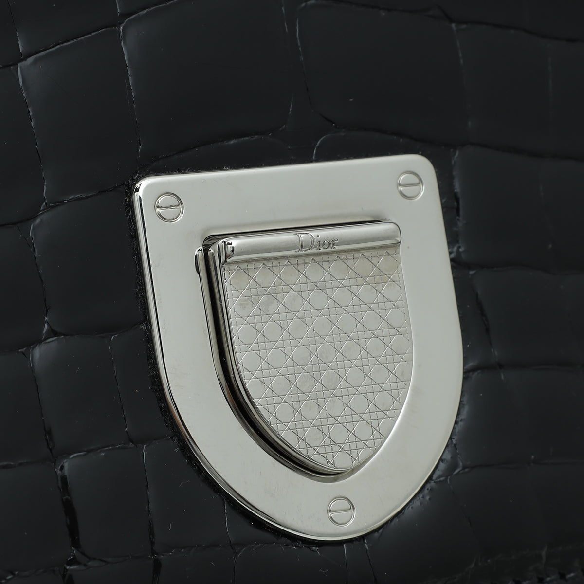 Christian Dior Black Shiny Crocodile Diorama Flap Medium Bag