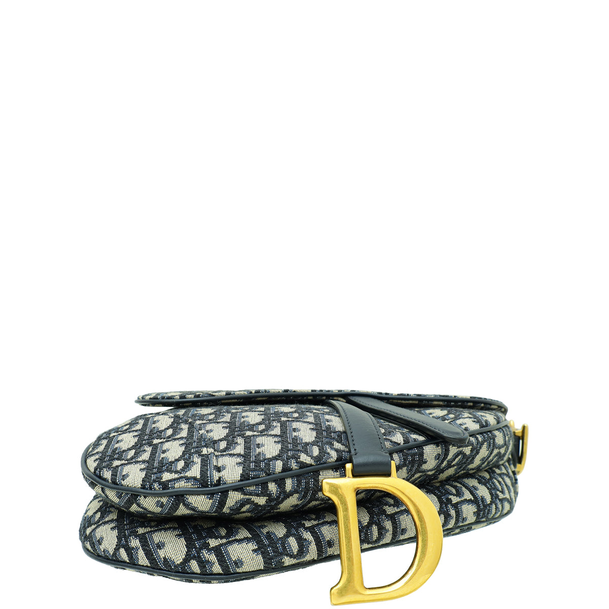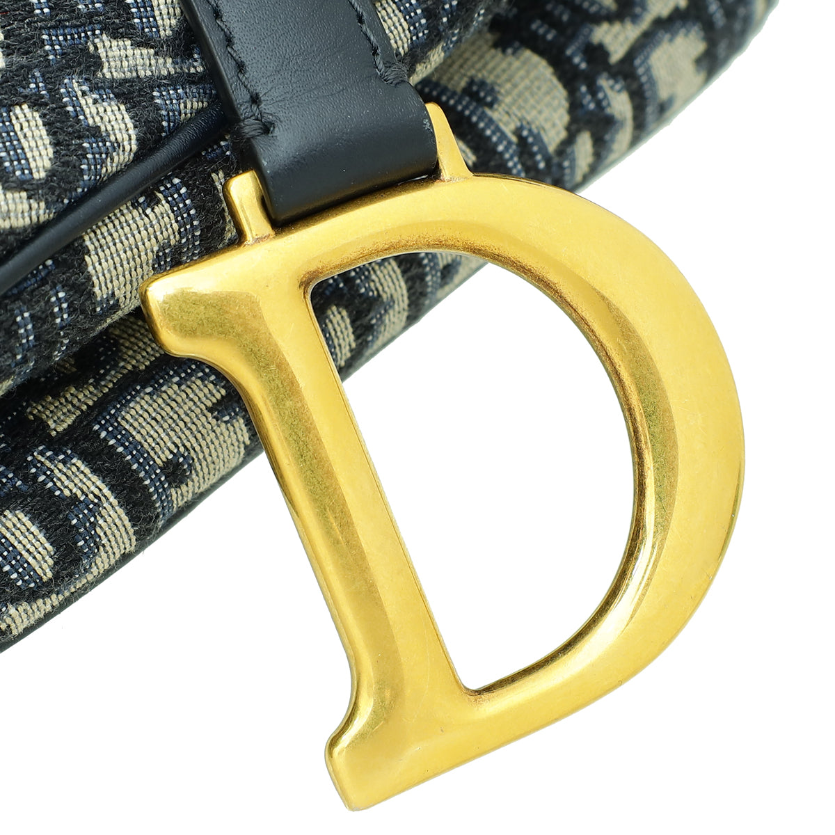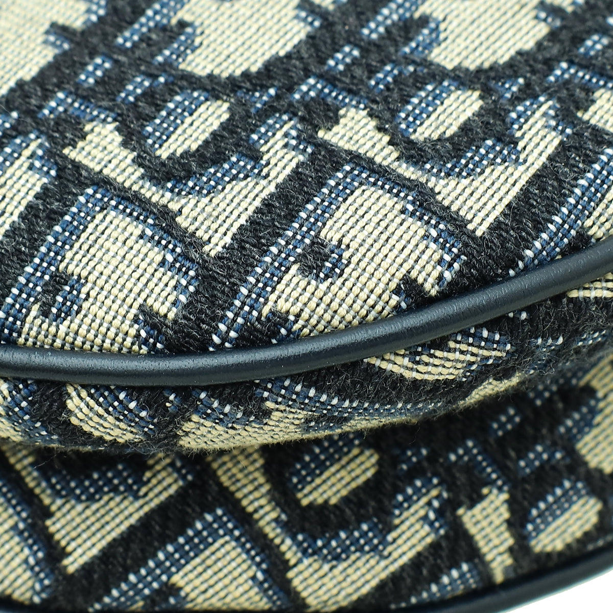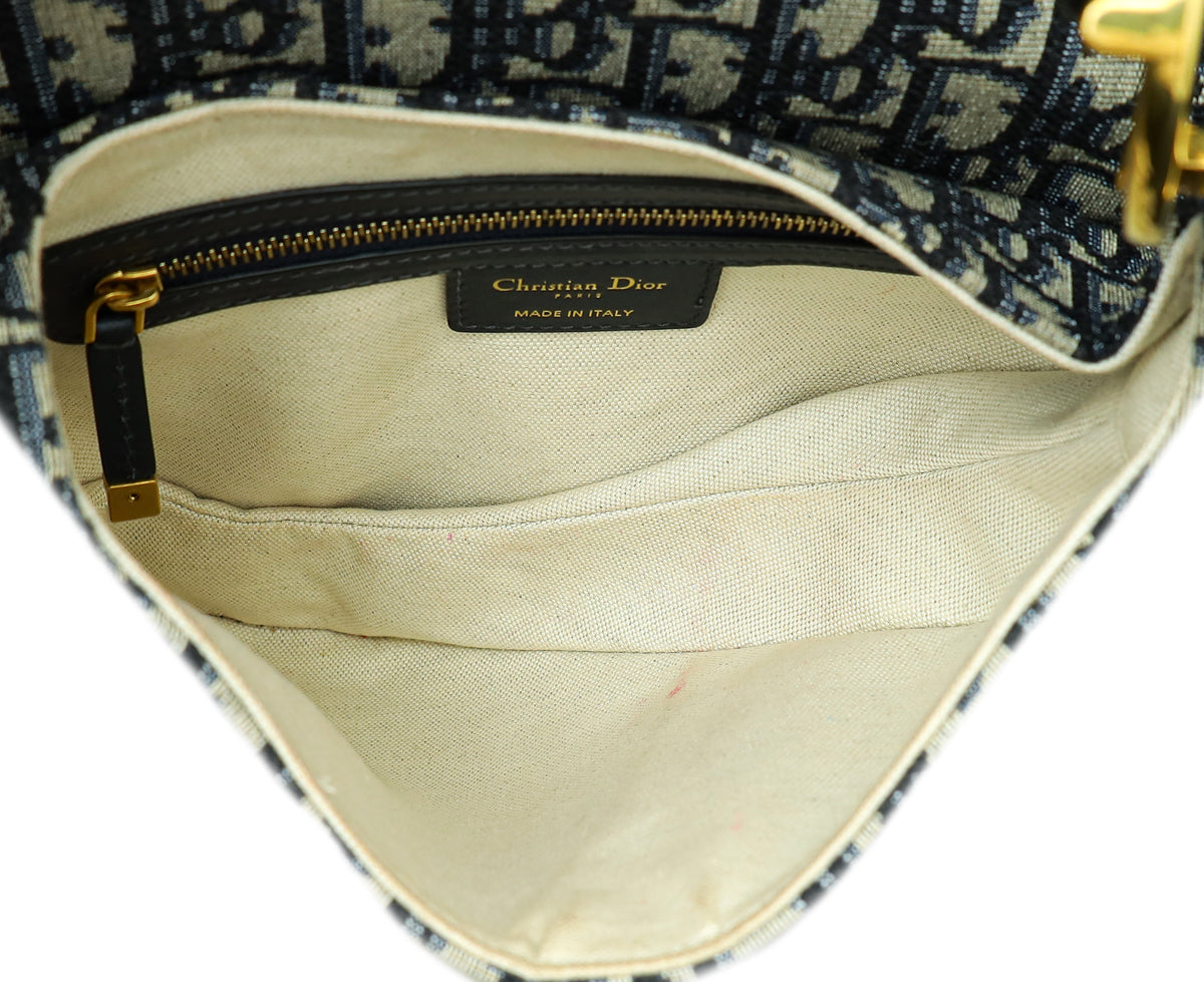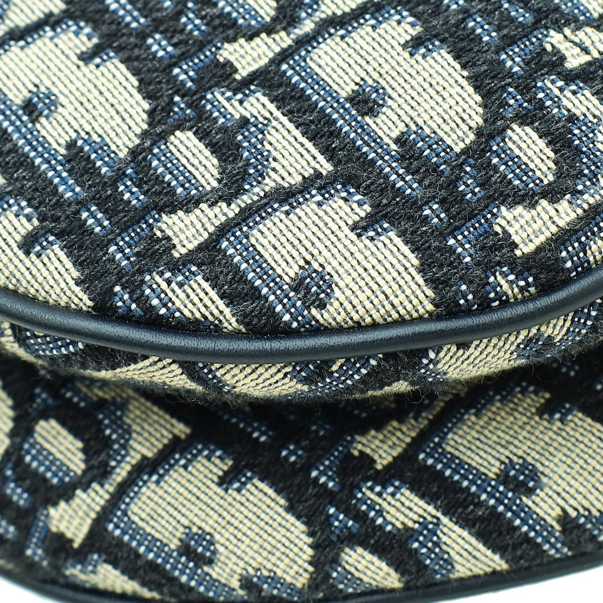 Christian Dior Navy Blue Oblique Saddle Medium Bag W/ Strap