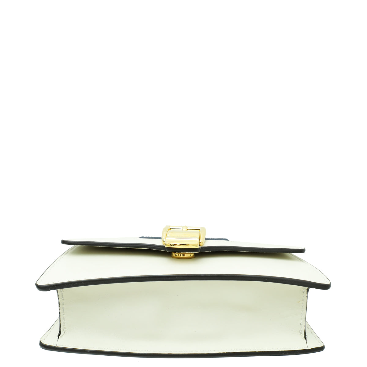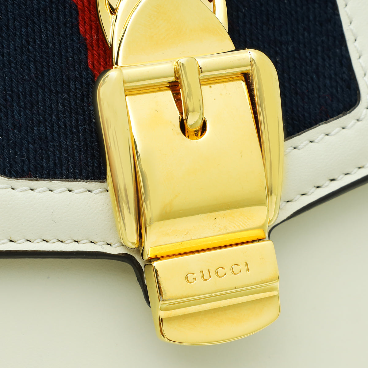Material: Off White Smooth Calfskin Leather with Blue/Red Web Canvas Detail