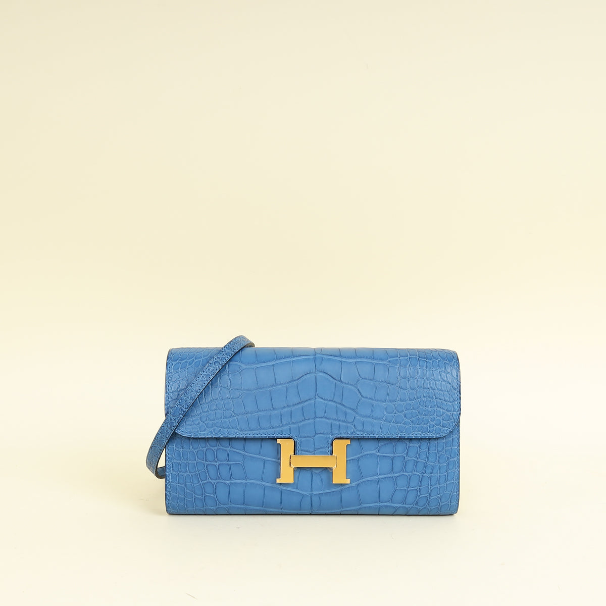 Hermes Bleu Zellige Matte Alligator Constance To Go Wallet