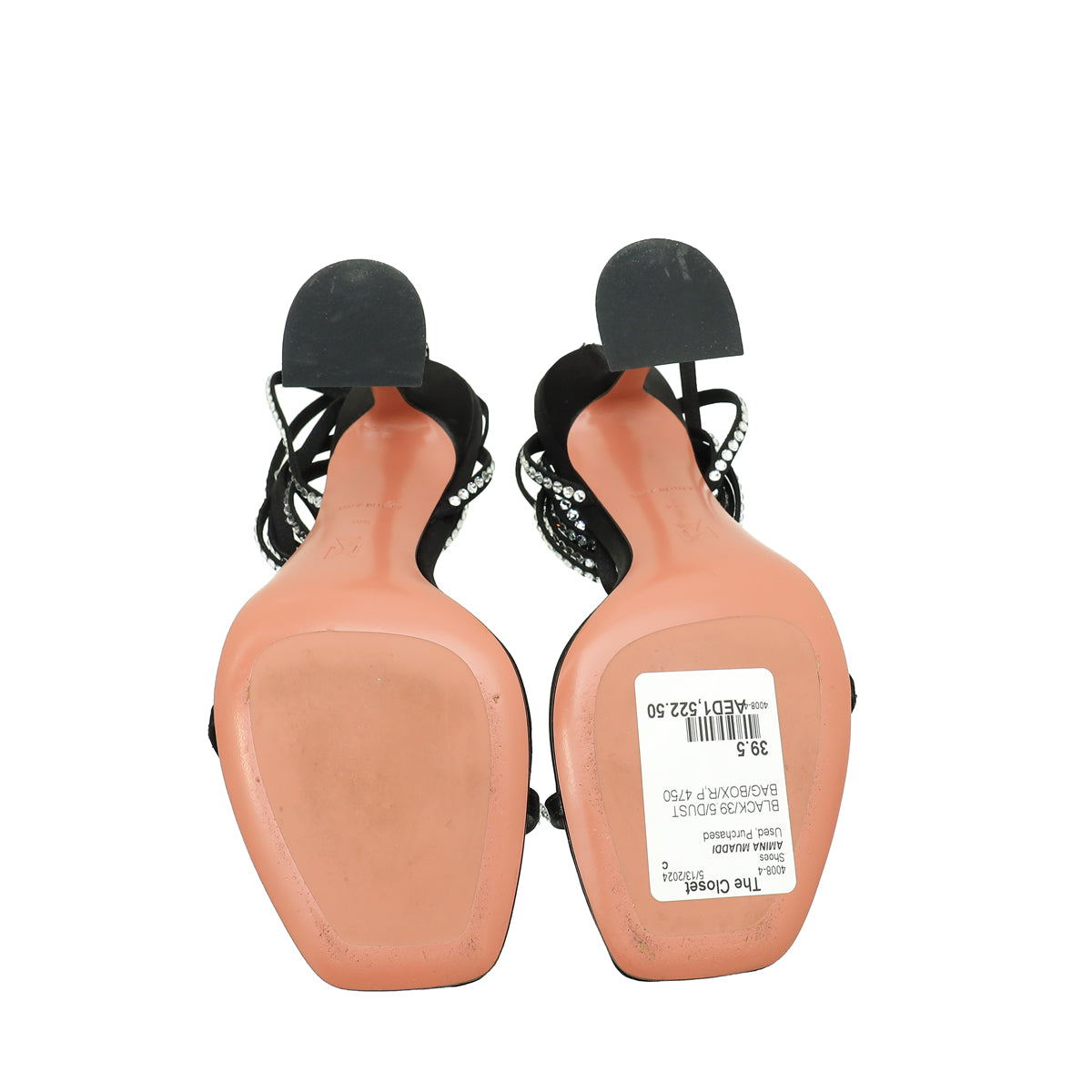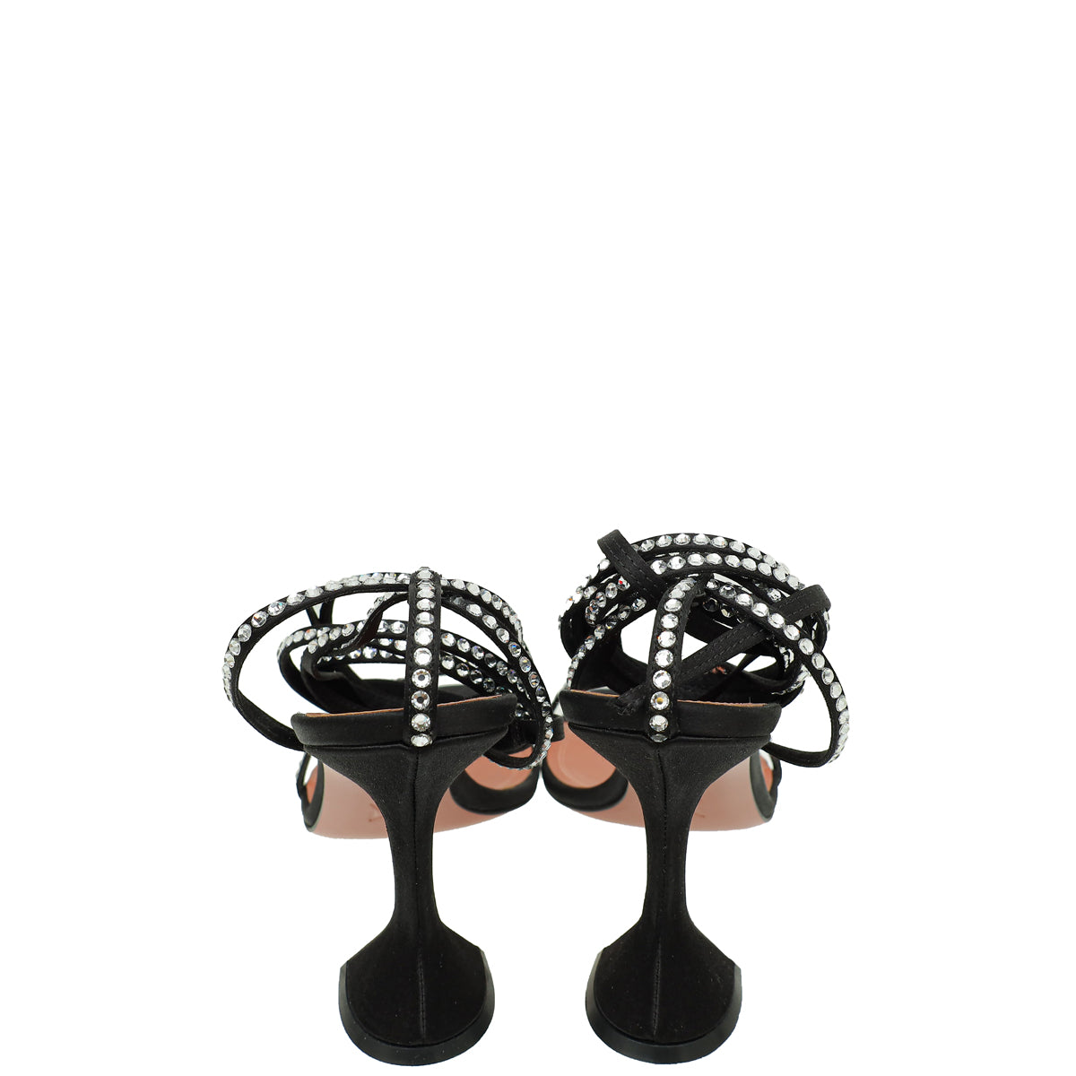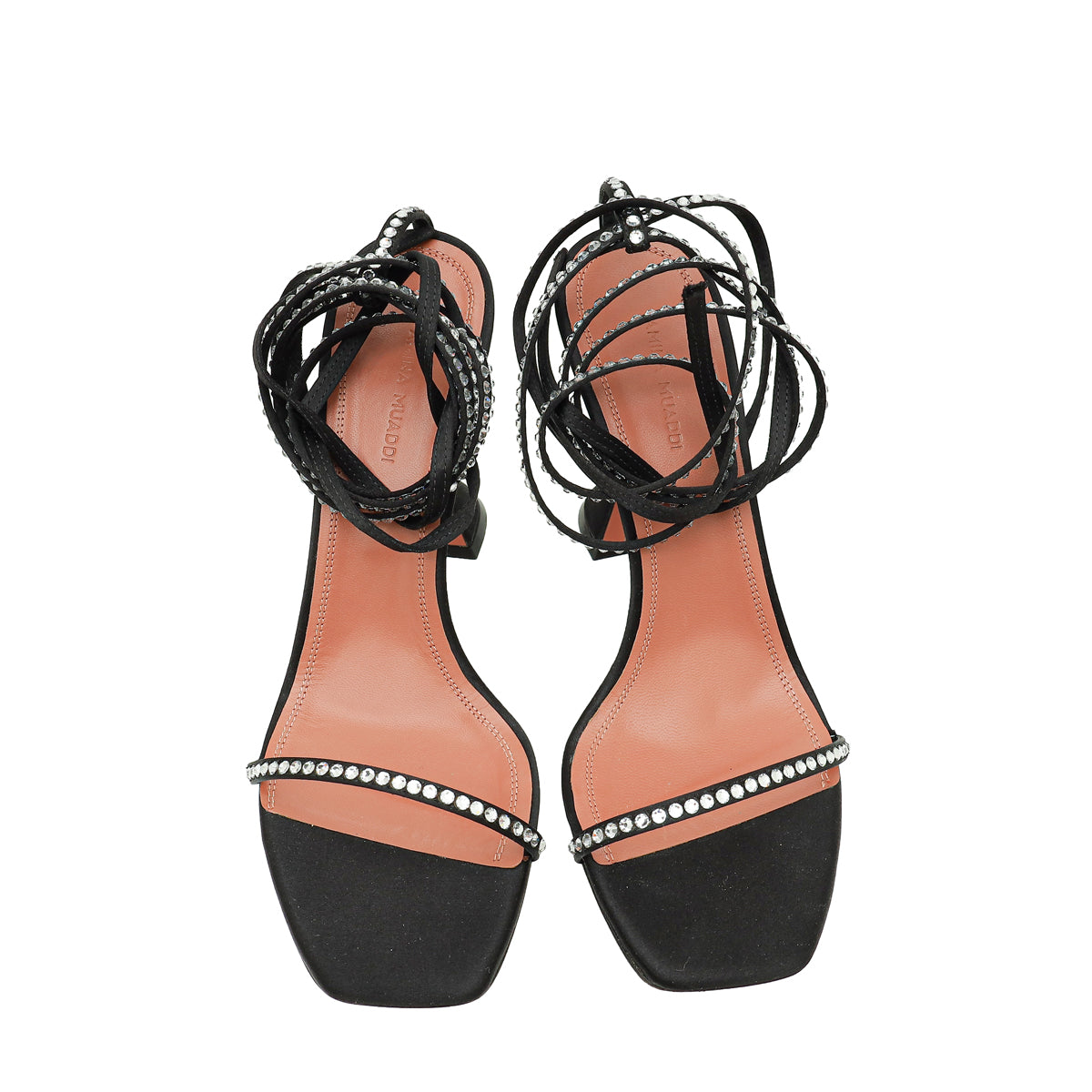 Amina Muaddi Black Satin Crystal Vita Sandals 39.5