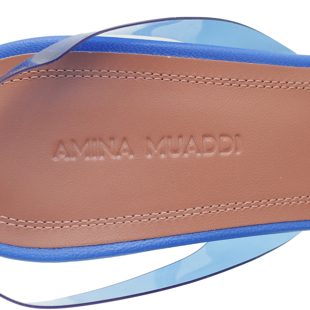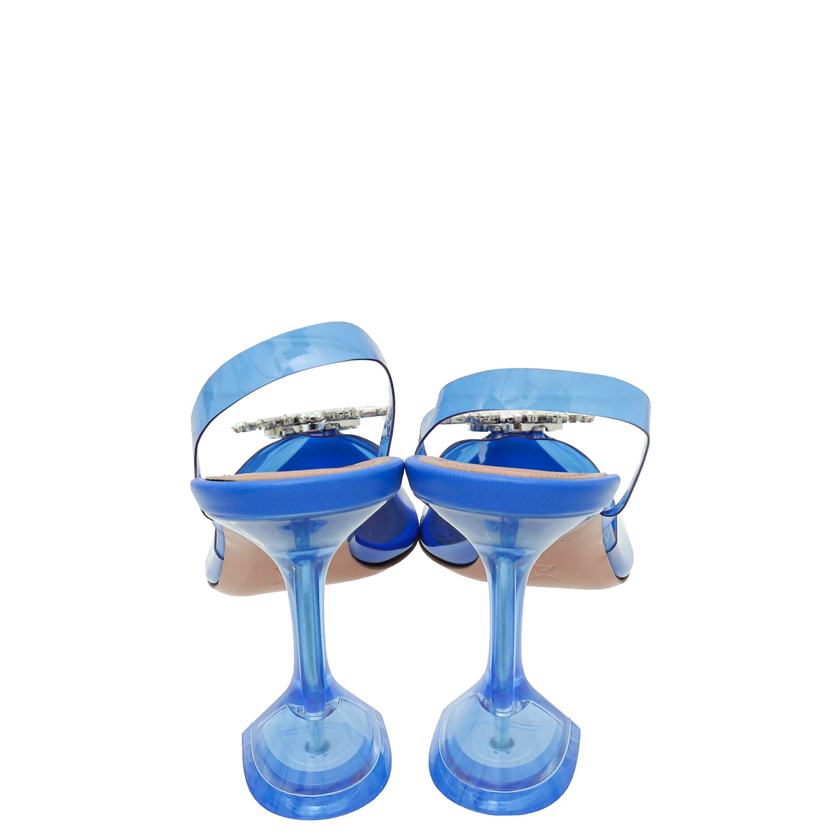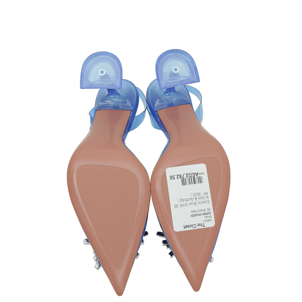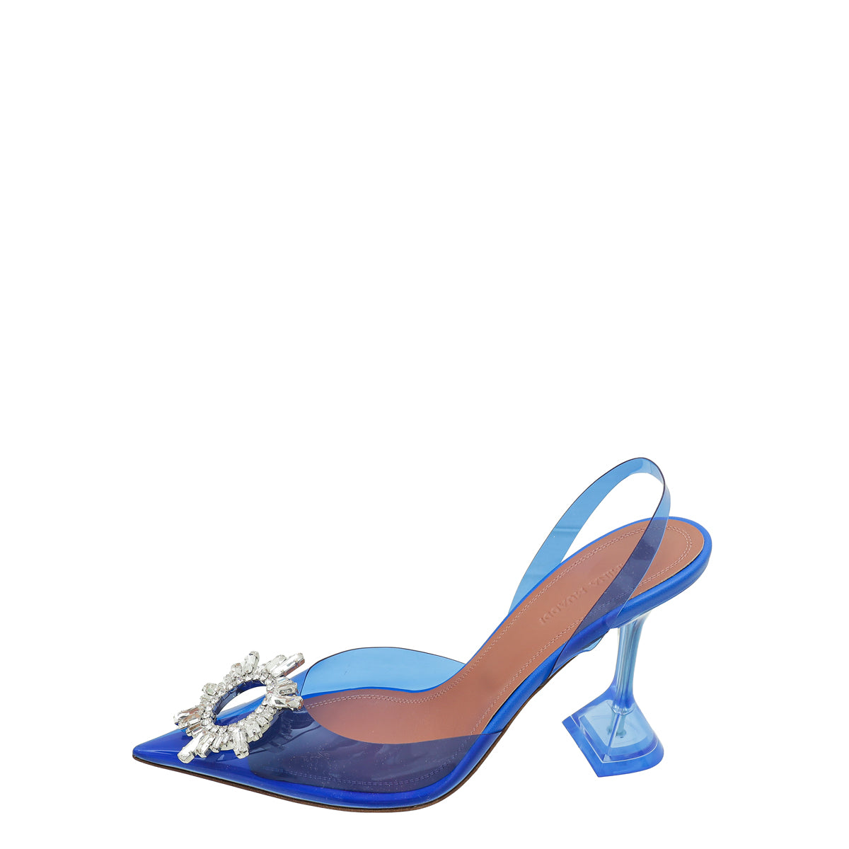 Amina Muaddi Electric Blue PVC Crystal Begum Slingback Pumps 38