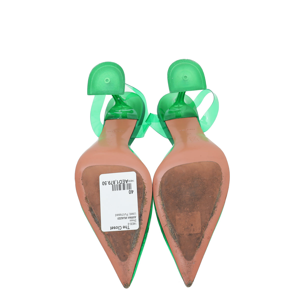 Amina Muaddi Green PVC Crystal Begum Slingback Pumps 40