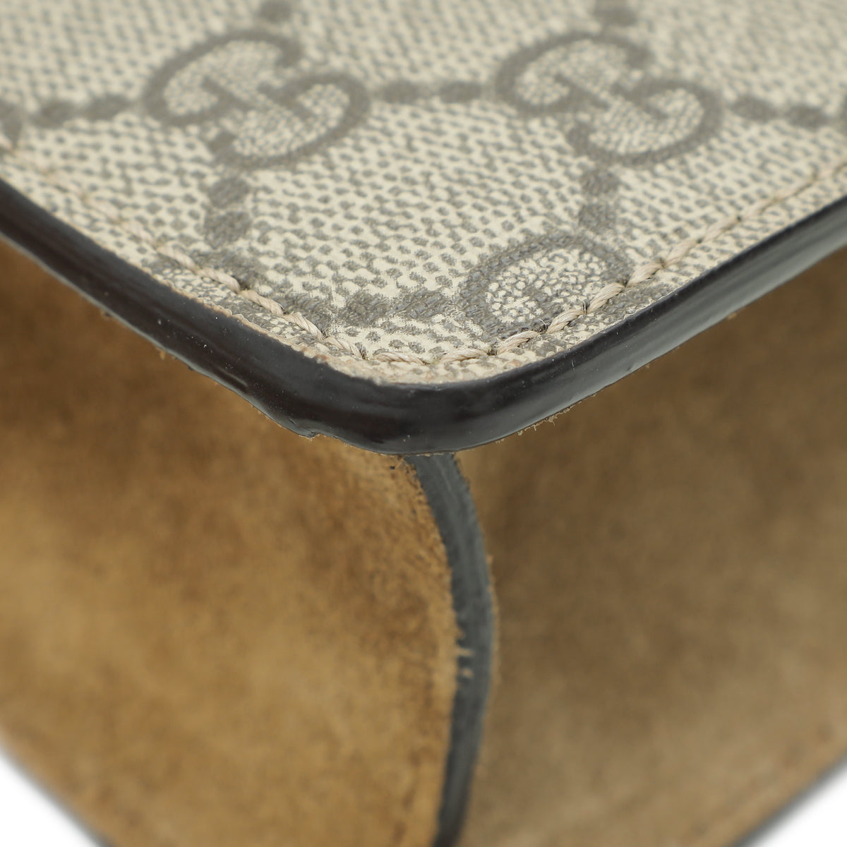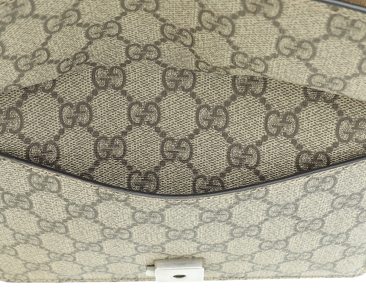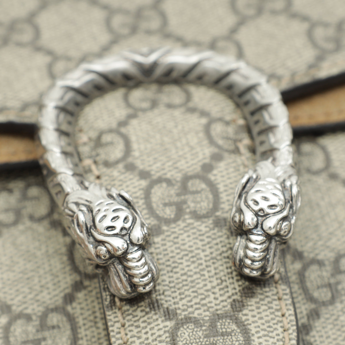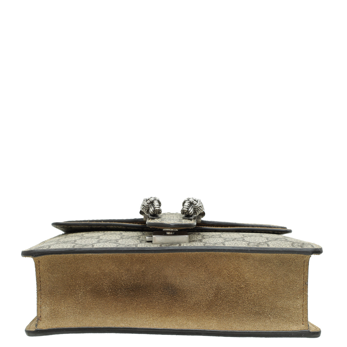 Material: Ebony GG Coated Canvas and Beige Suede Trim with Tiger Head Closure