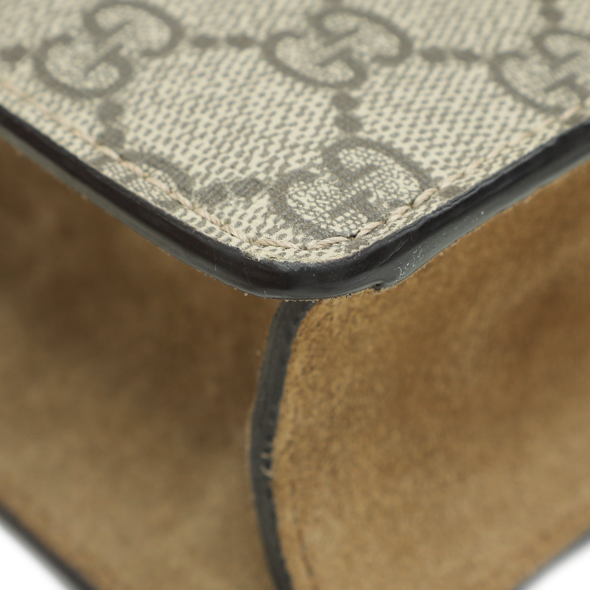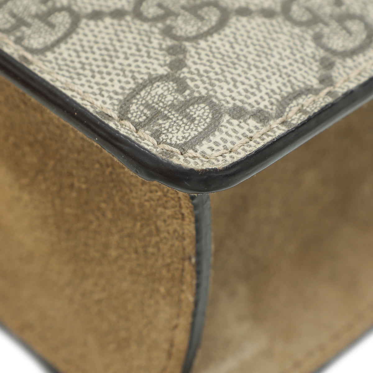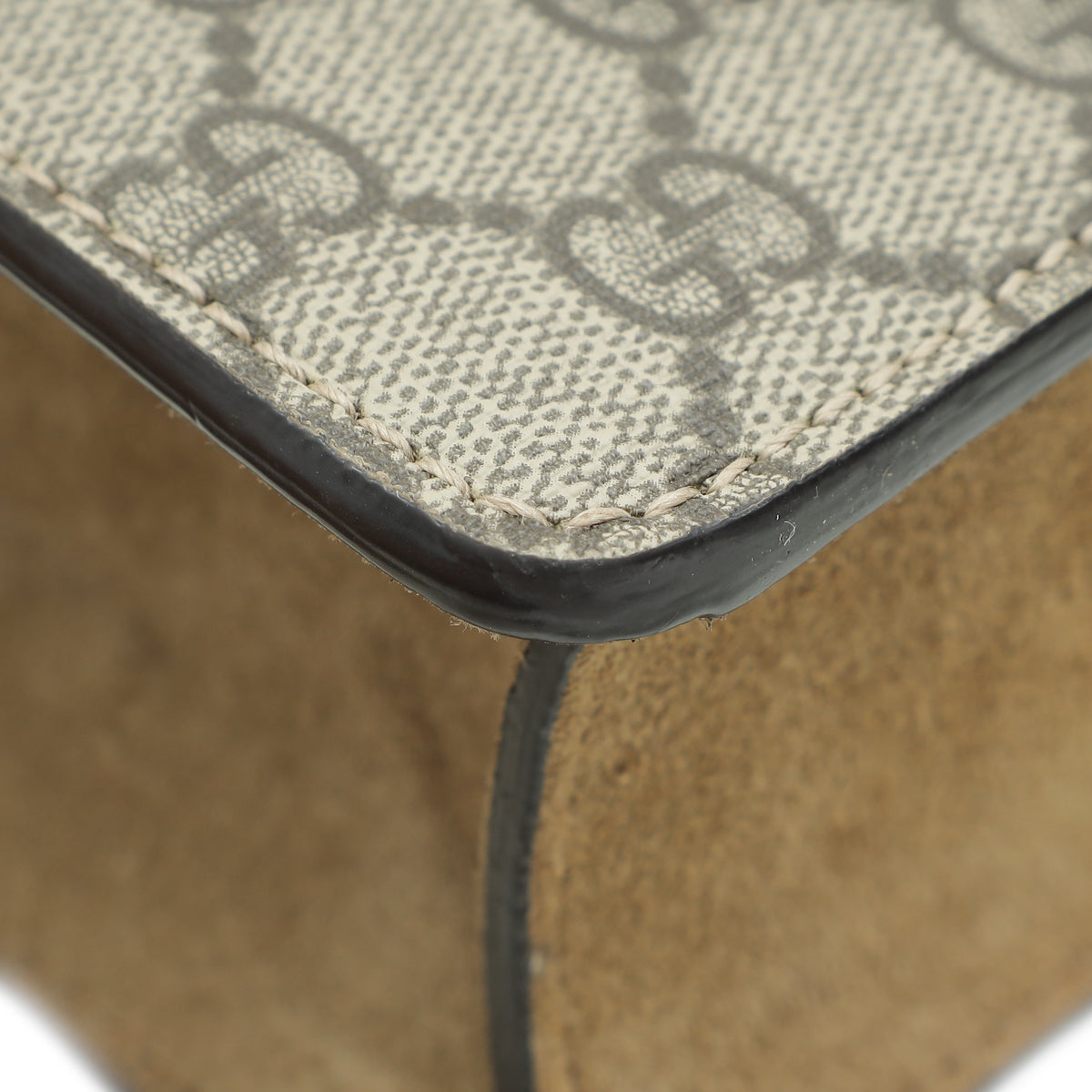 Material: Ebony GG Coated Canvas and Beige Suede Trim with Tiger Head Closure