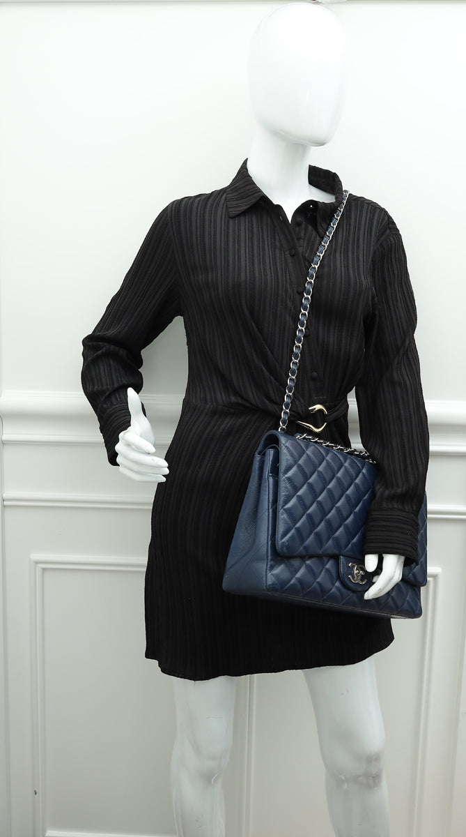 Chanel Blue Classic Double Flap Maxi Bag