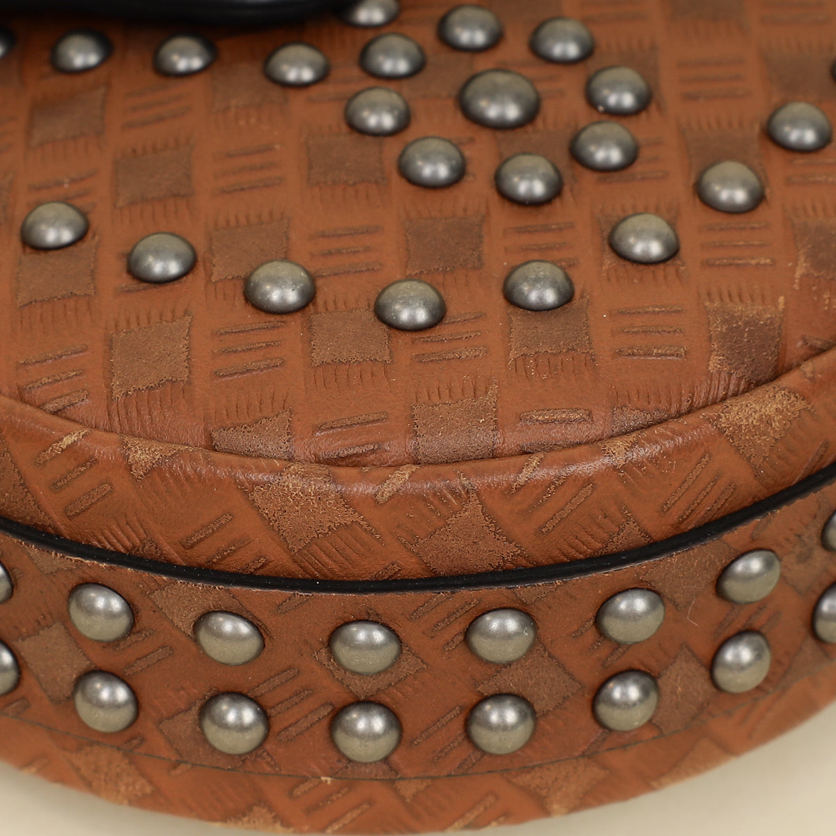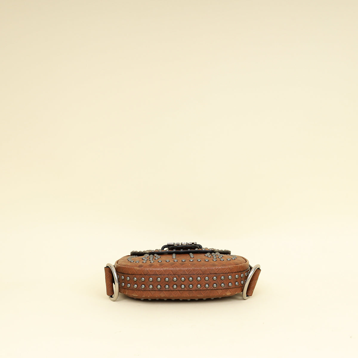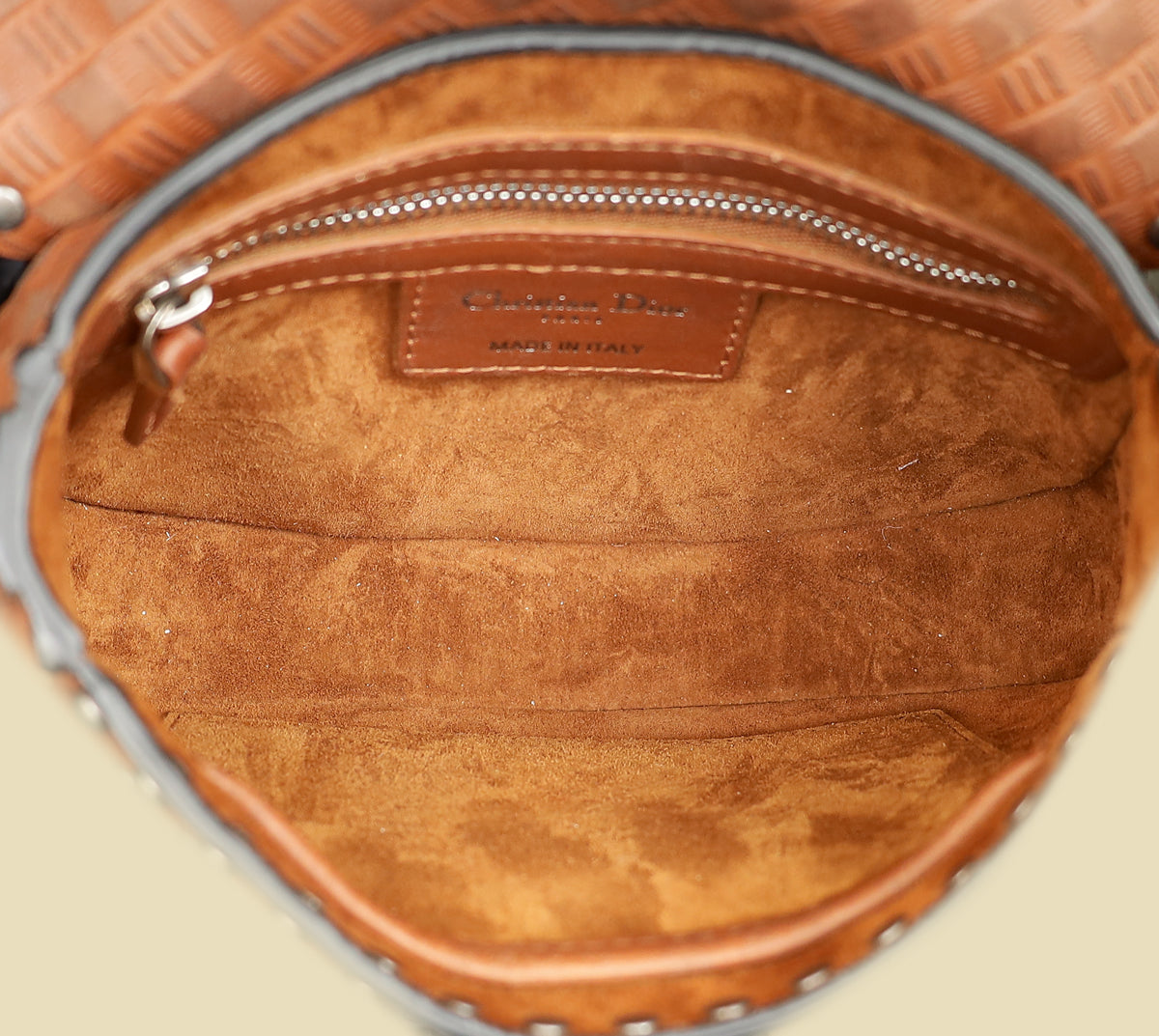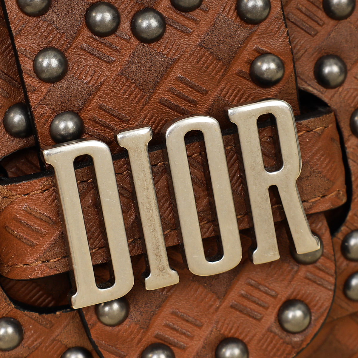 Christian Dior Brown Cannage Embossed Studded D-Fence Saddle Bag