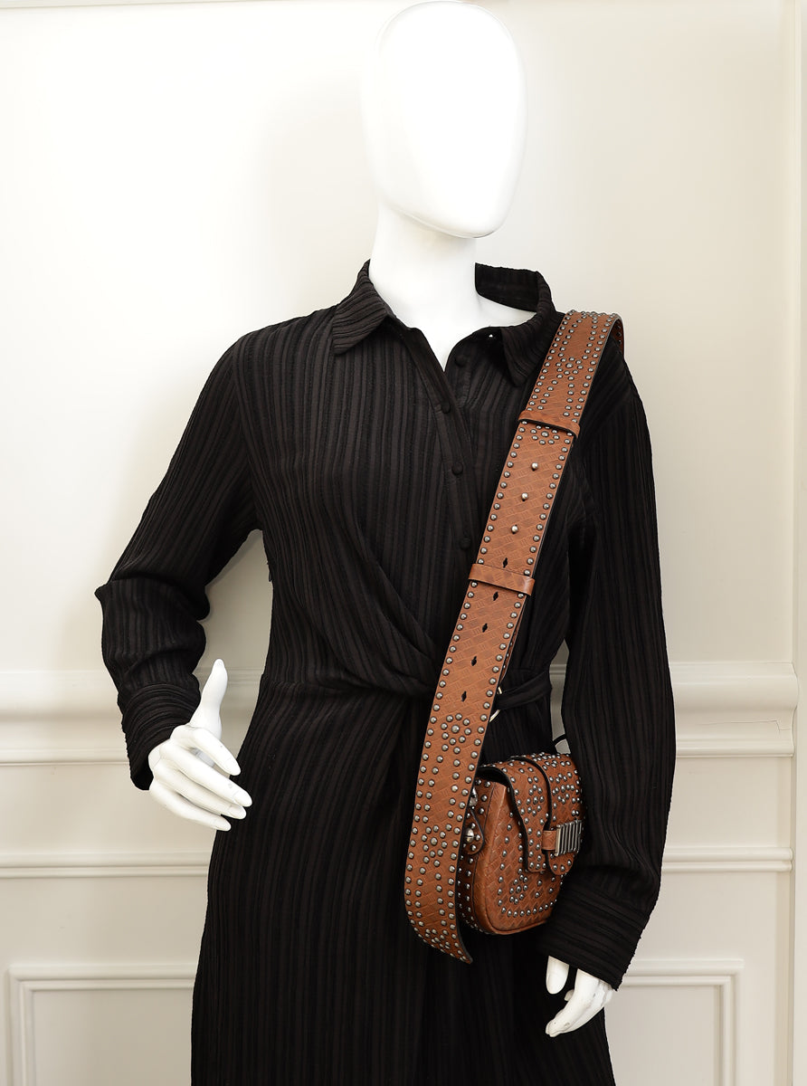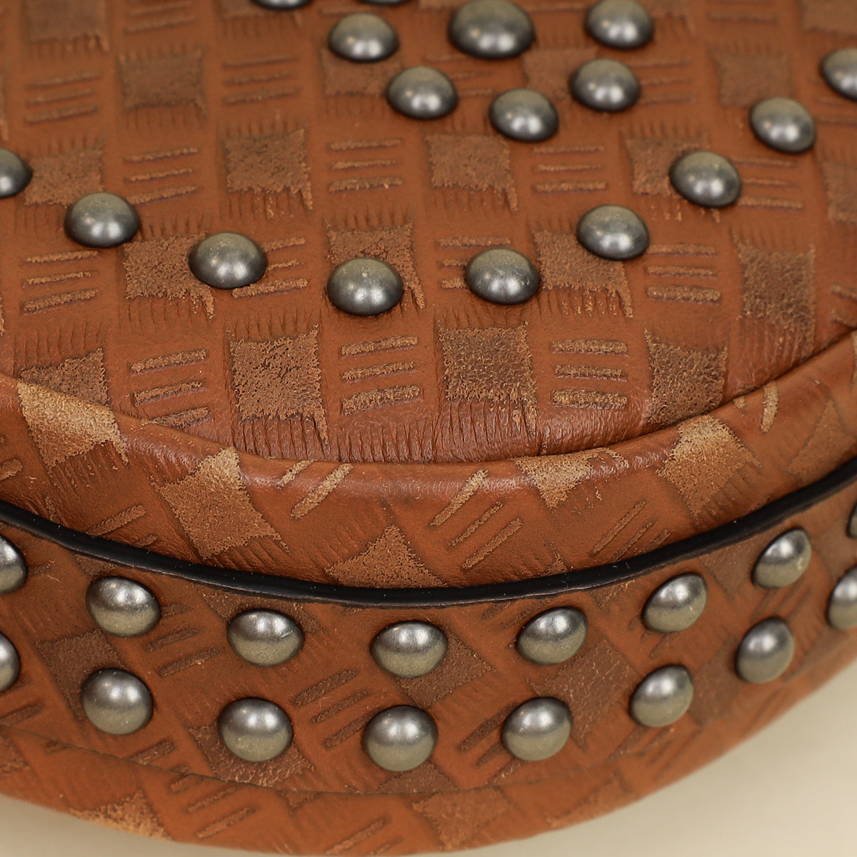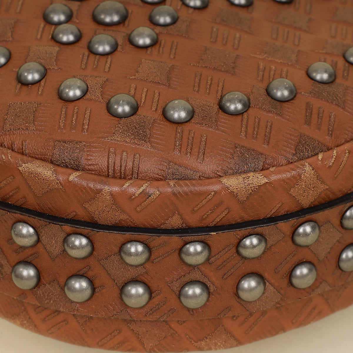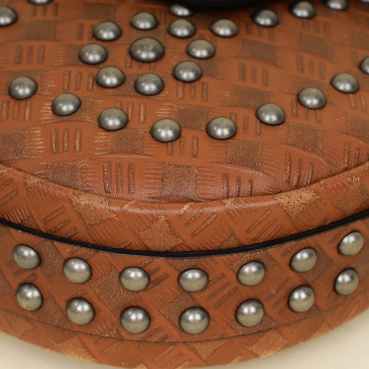 Christian Dior Brown Cannage Embossed Studded D-Fence Saddle Bag
