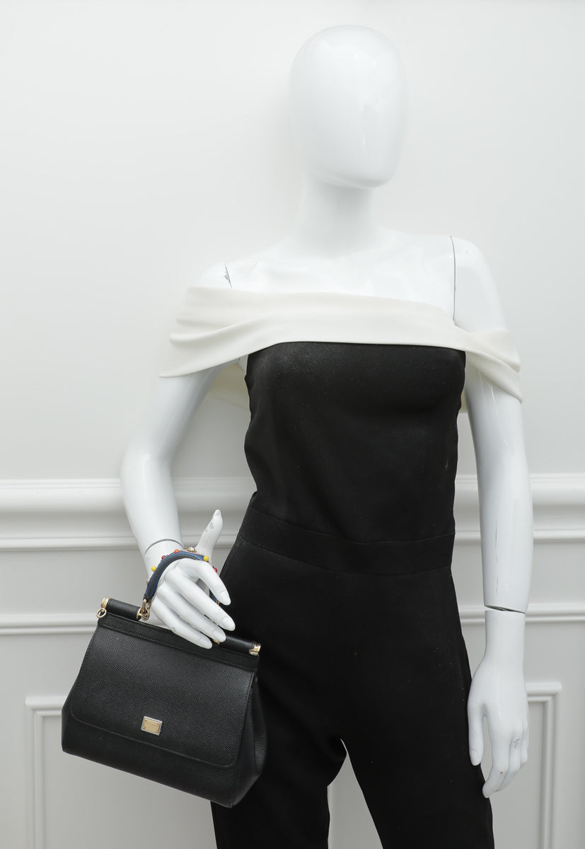 Dolce & Gabbana Black Studded Handle Small Sicily Bag