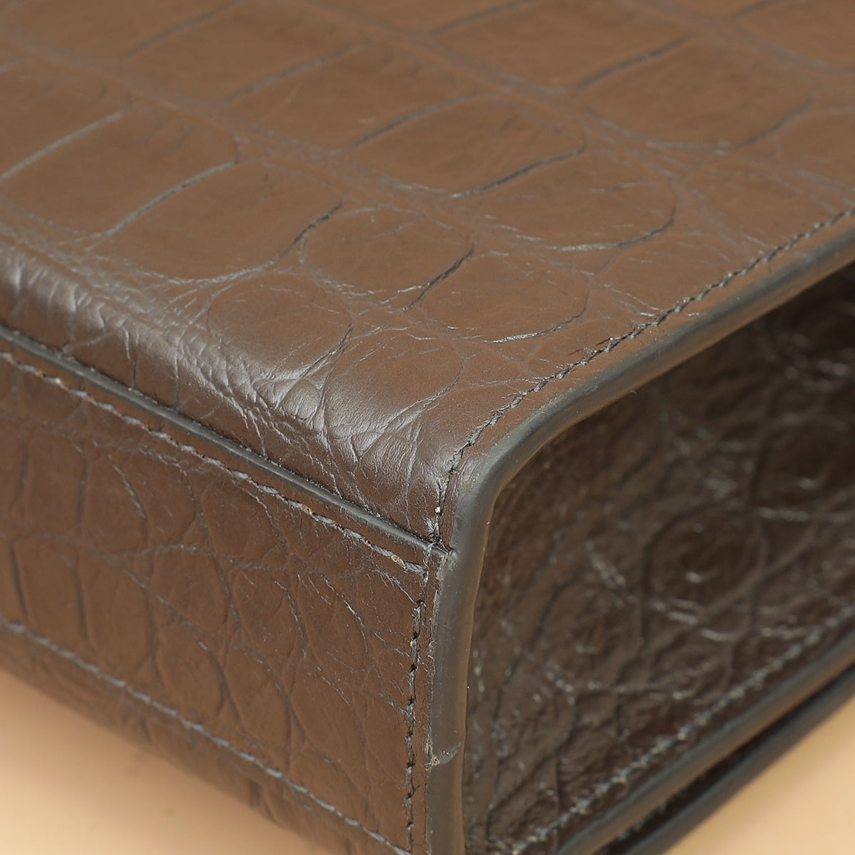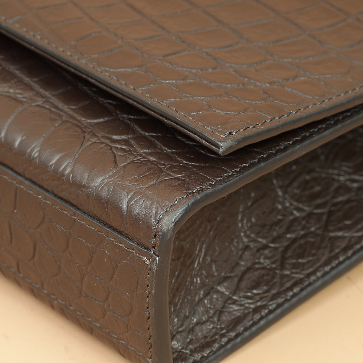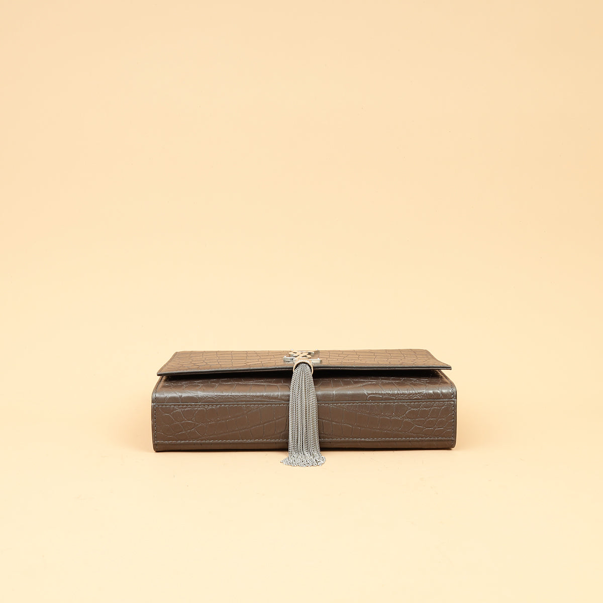 YSL Brown Croco Embossed Tassel Kate Bag