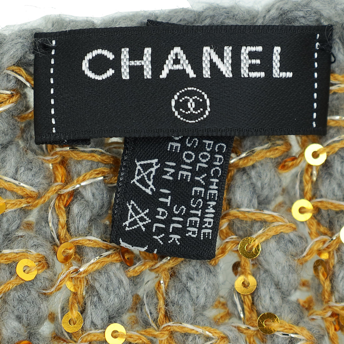 Chanel Bicolor CC Cashmere Silk Sequins Scarf