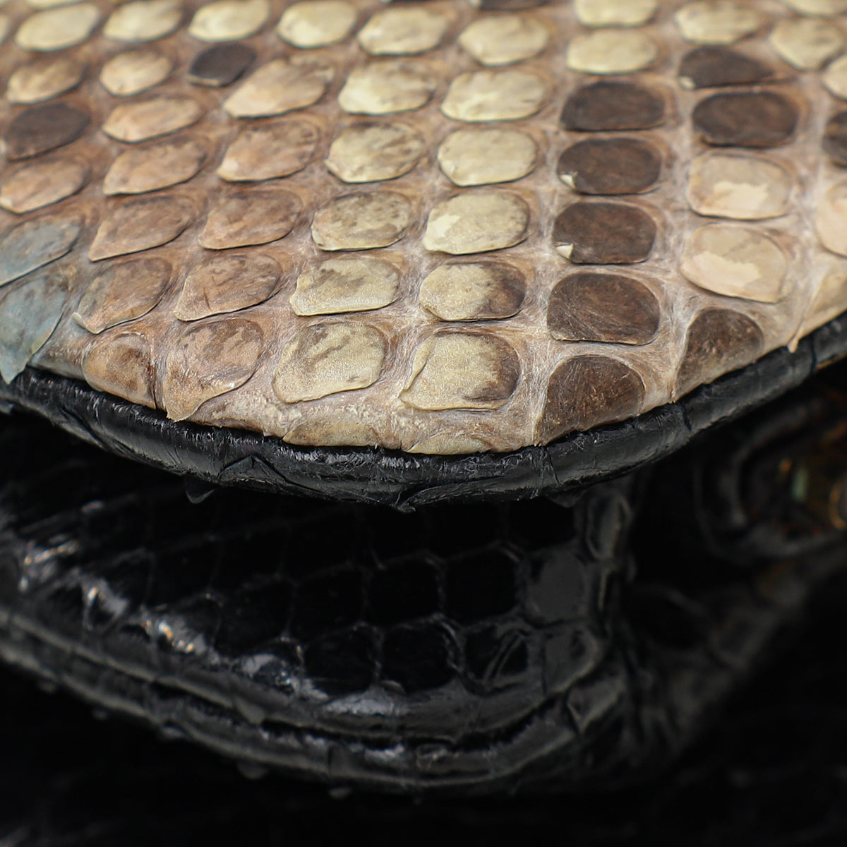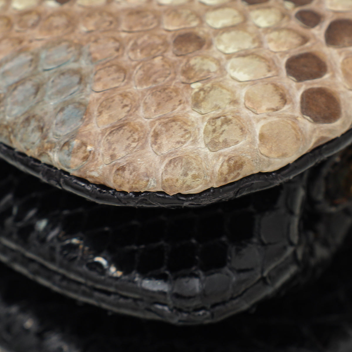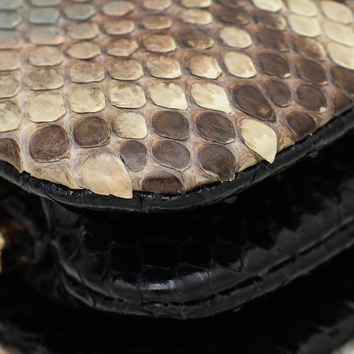 - Material: Beige Natural/Black Python Leather