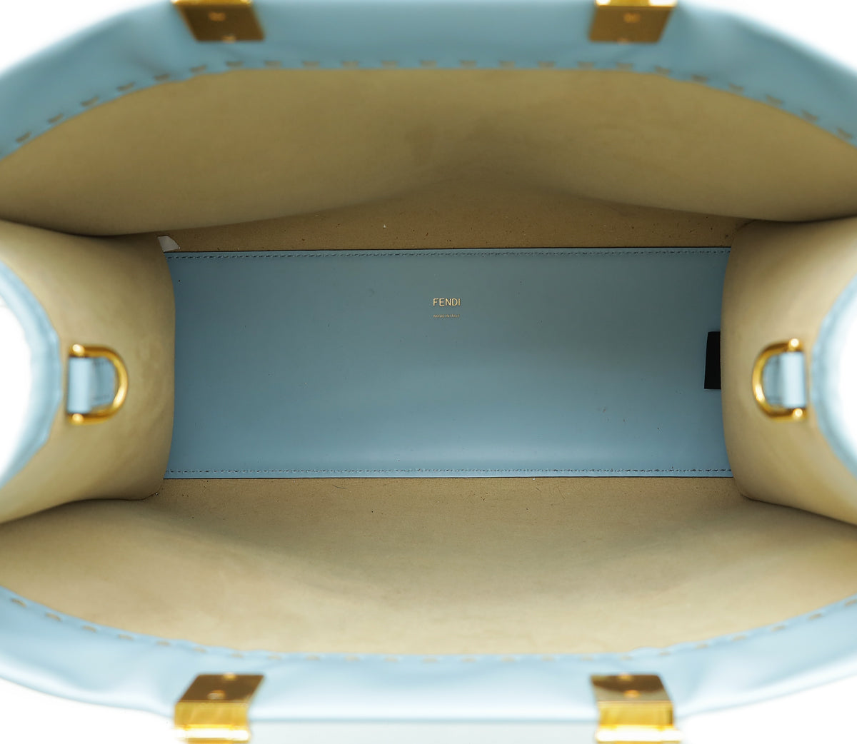 Material: Sky Blue Smooth Calf Leather with Stamped “FENDI ROMA” and Tortoiseshell Effect Plexiglass Handles