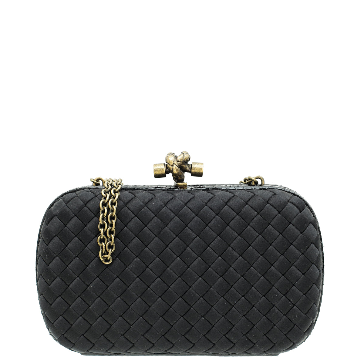 Bottega Veneta Black Knot Intrecciato Silk Chain Clutch Bag-Bottega Veneta-THE CLOSET