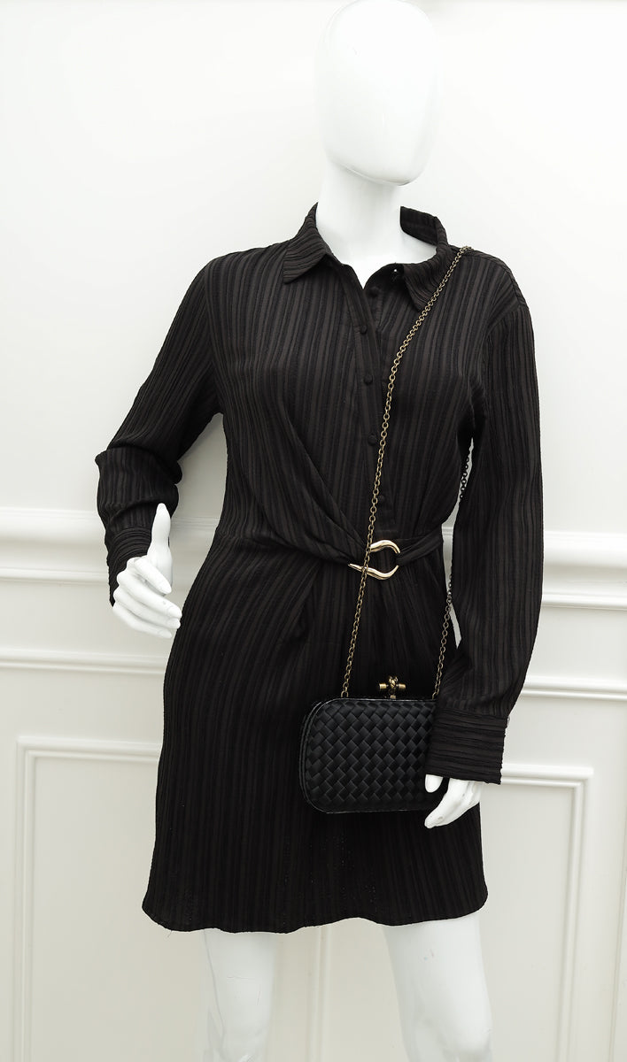 Bottega Veneta Black Knot Intrecciato Silk Chain Clutch Bag