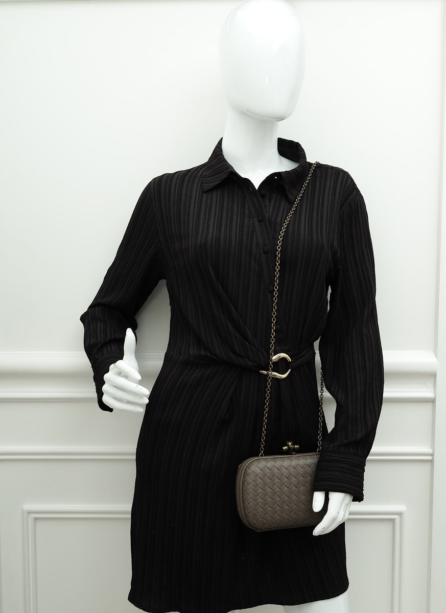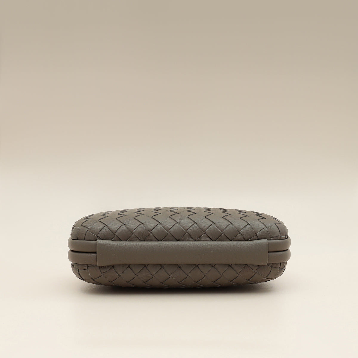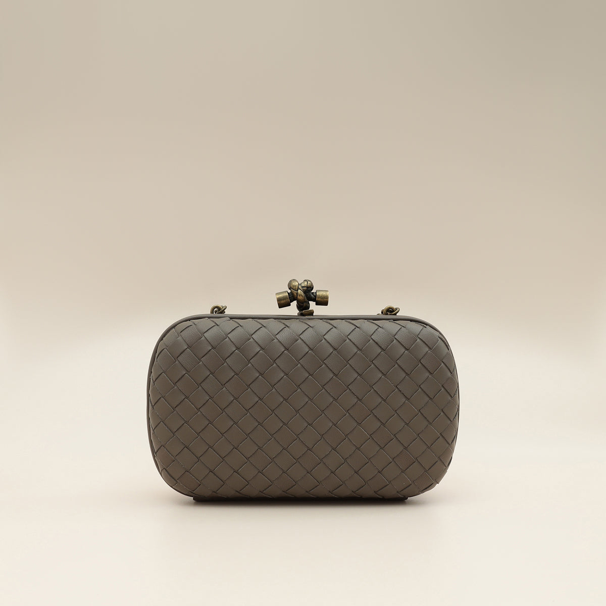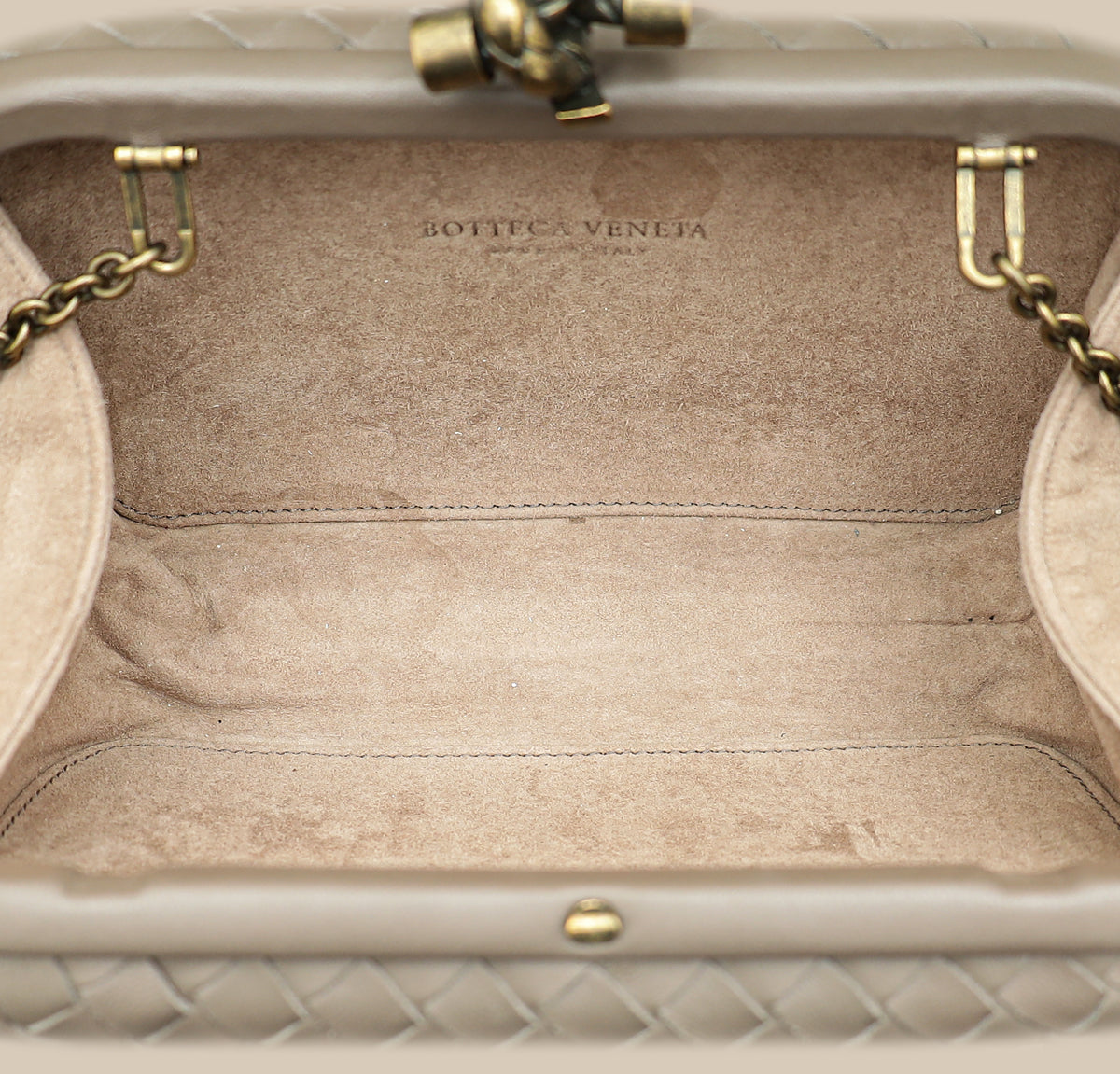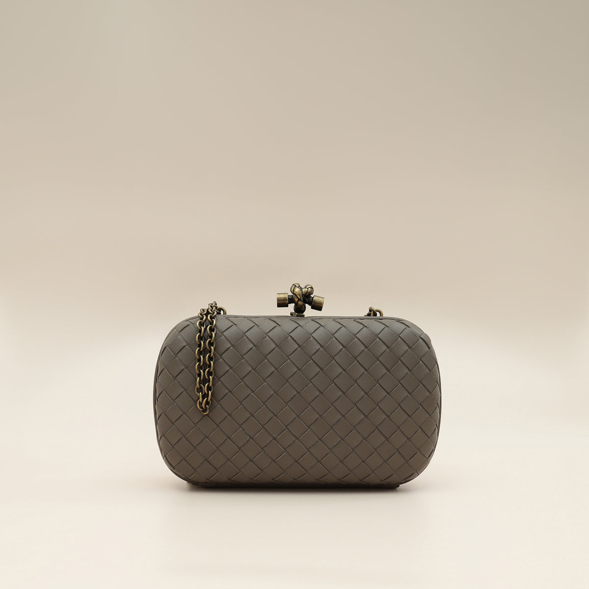 Bottega Veneta Greige Knot Intrecciato Chain Clutch Bag-Bottega Veneta-THE CLOSET