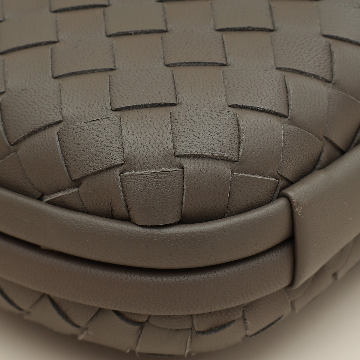 Bottega Veneta Greige Knot Intrecciato Chain Clutch Bag