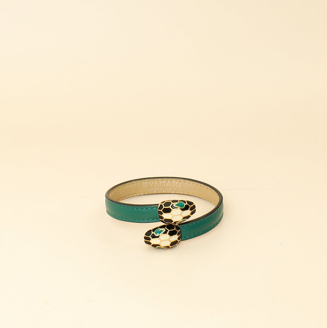 Bvlgari Emerald Green Serpenti Forever Leather Bracelet