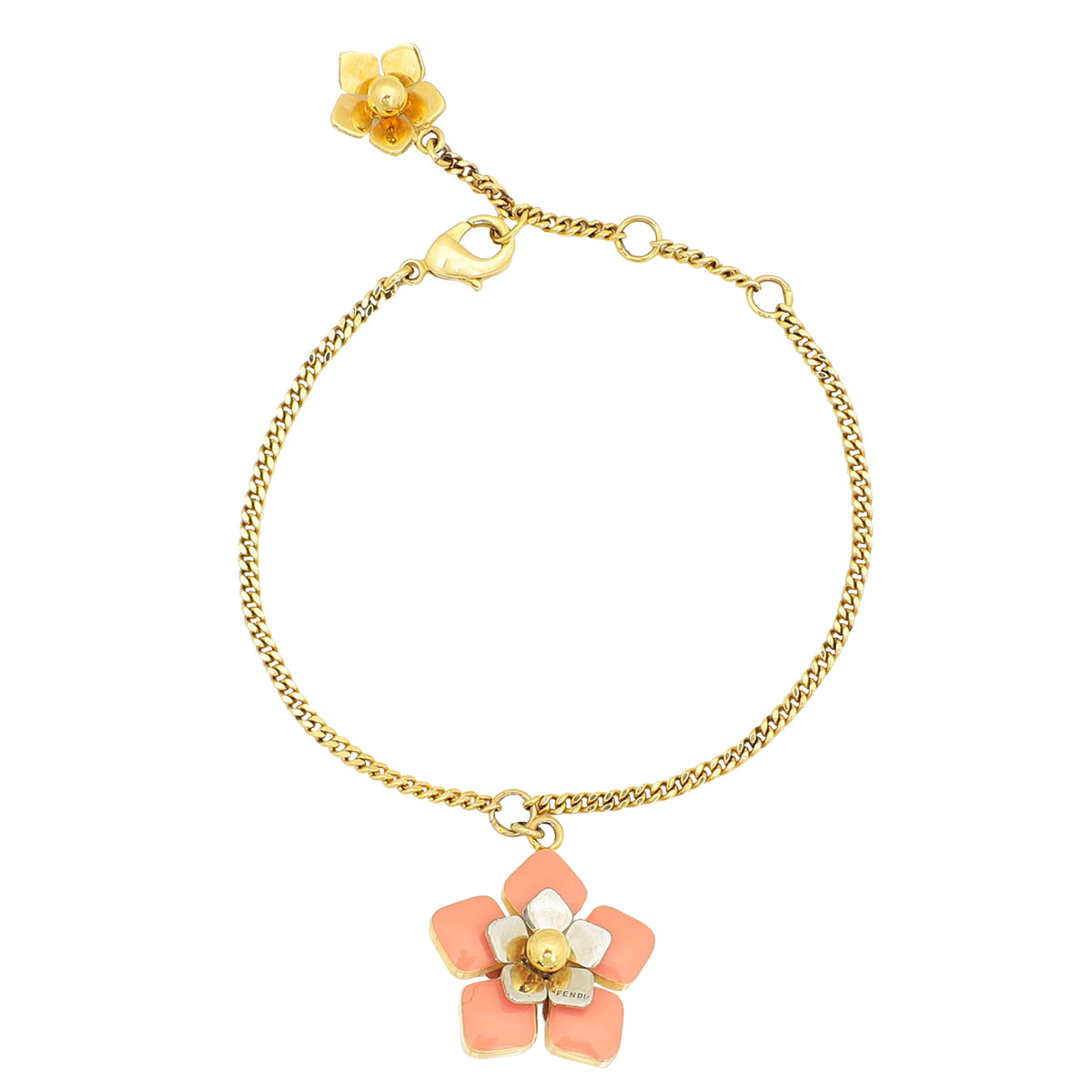 Fendi Peach Blossom Enamel Flower Charm Bracelet