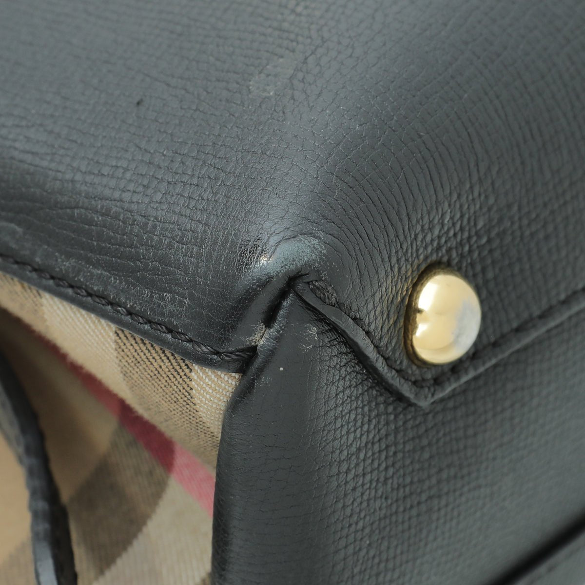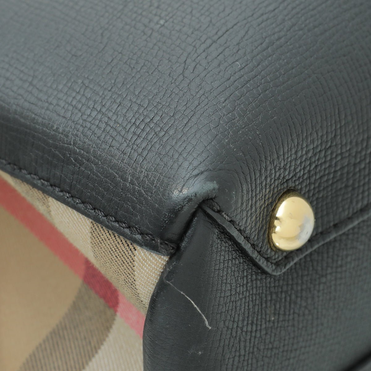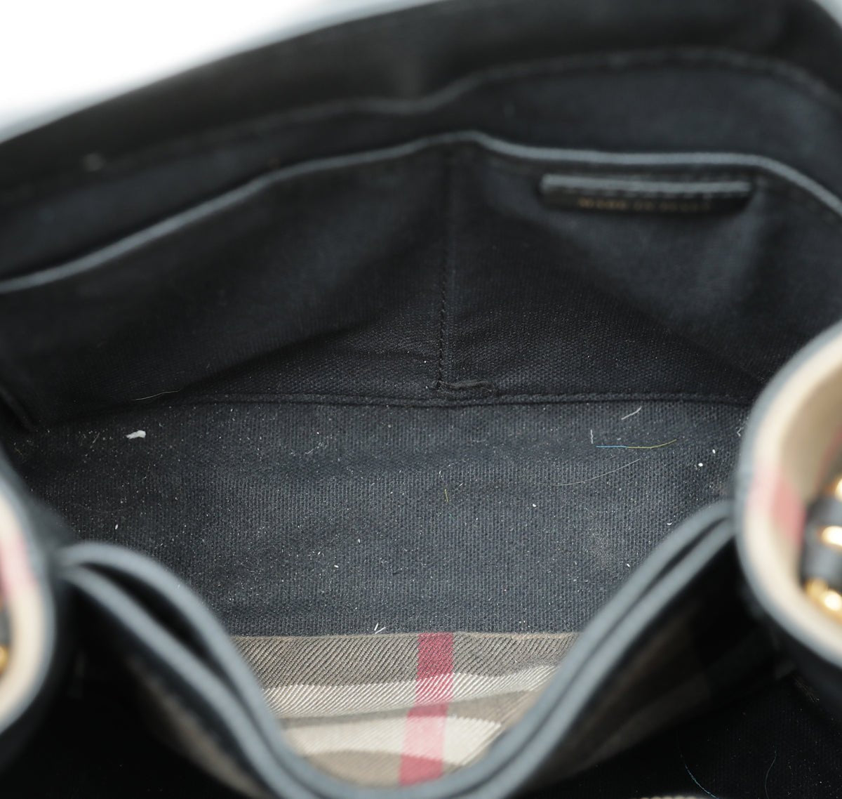 Exterior: good condition, with scratches on the hardware, corners, stain on leather and showing normal signs of use.