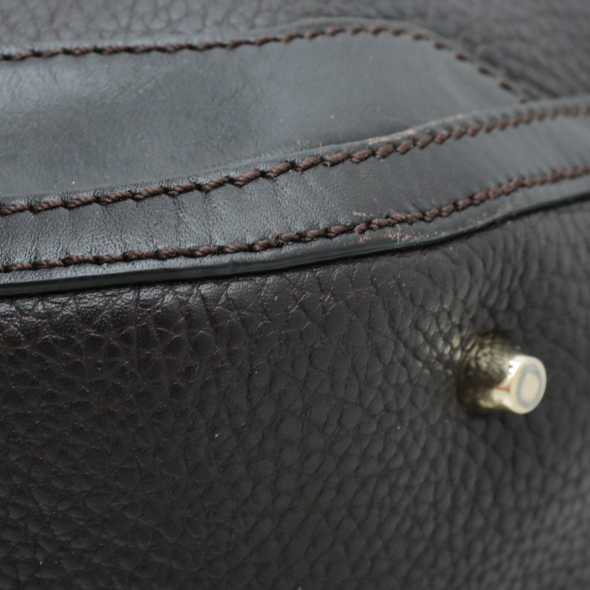 Exterior: good condition, with scratches on the hardware, corners, few spots on leather and showing normal signs of use.