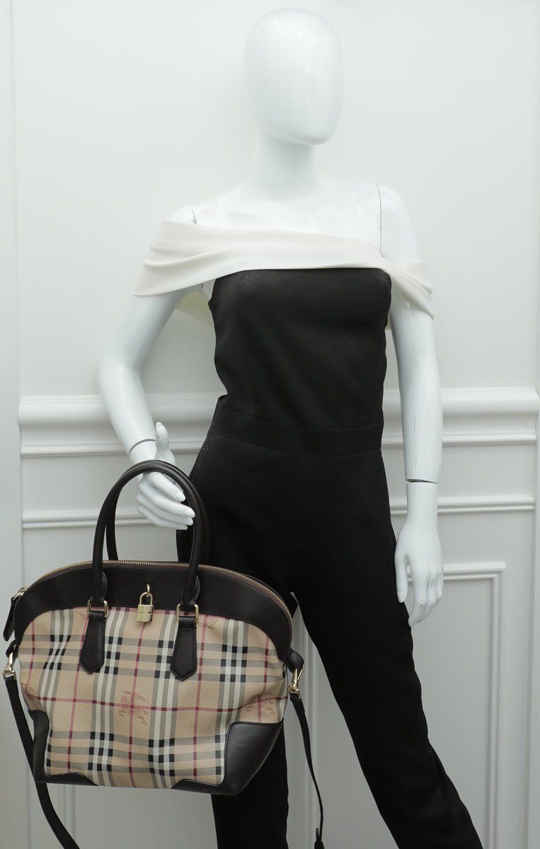 Burberry Chocolate Haymarket Check Medium Primrose Tote Bag