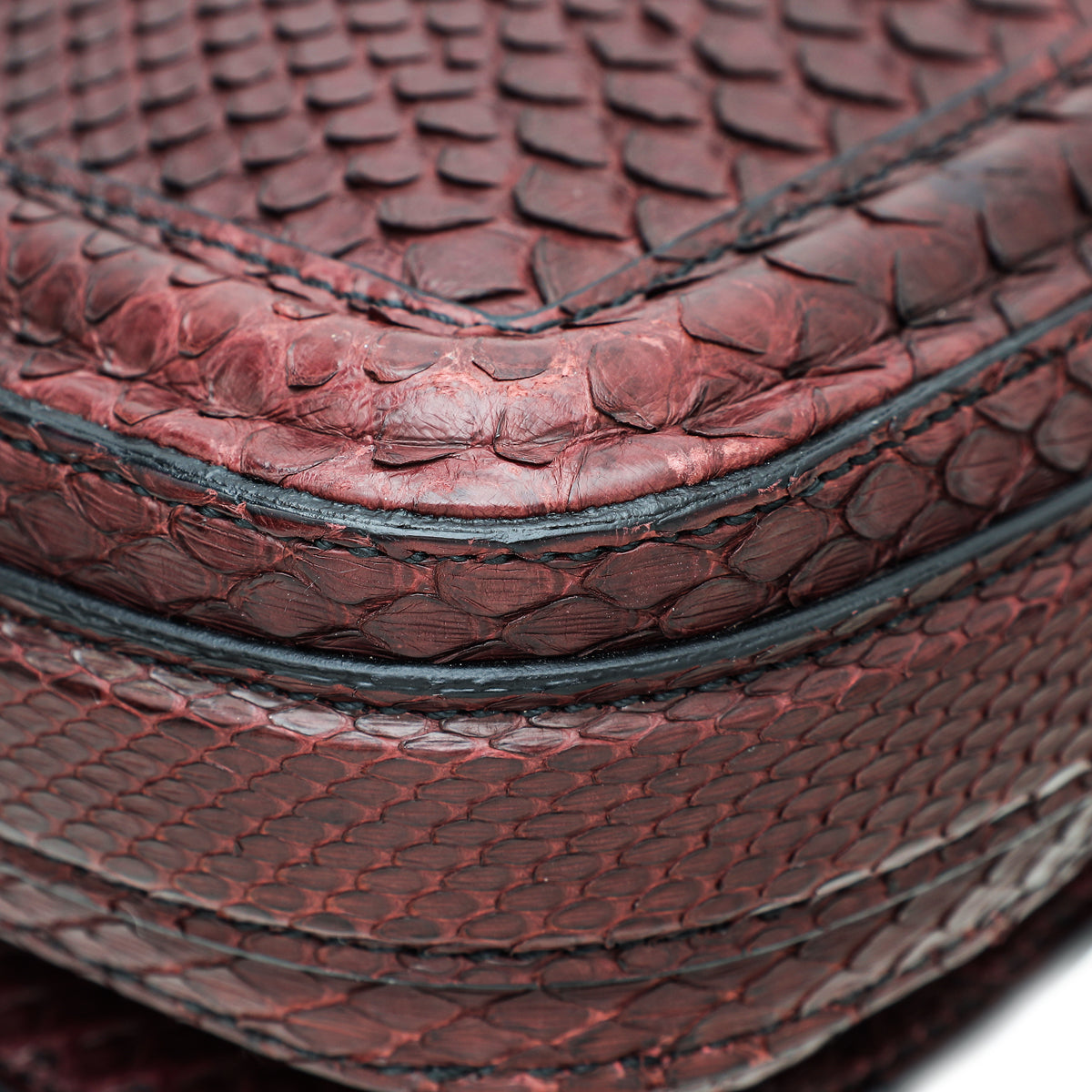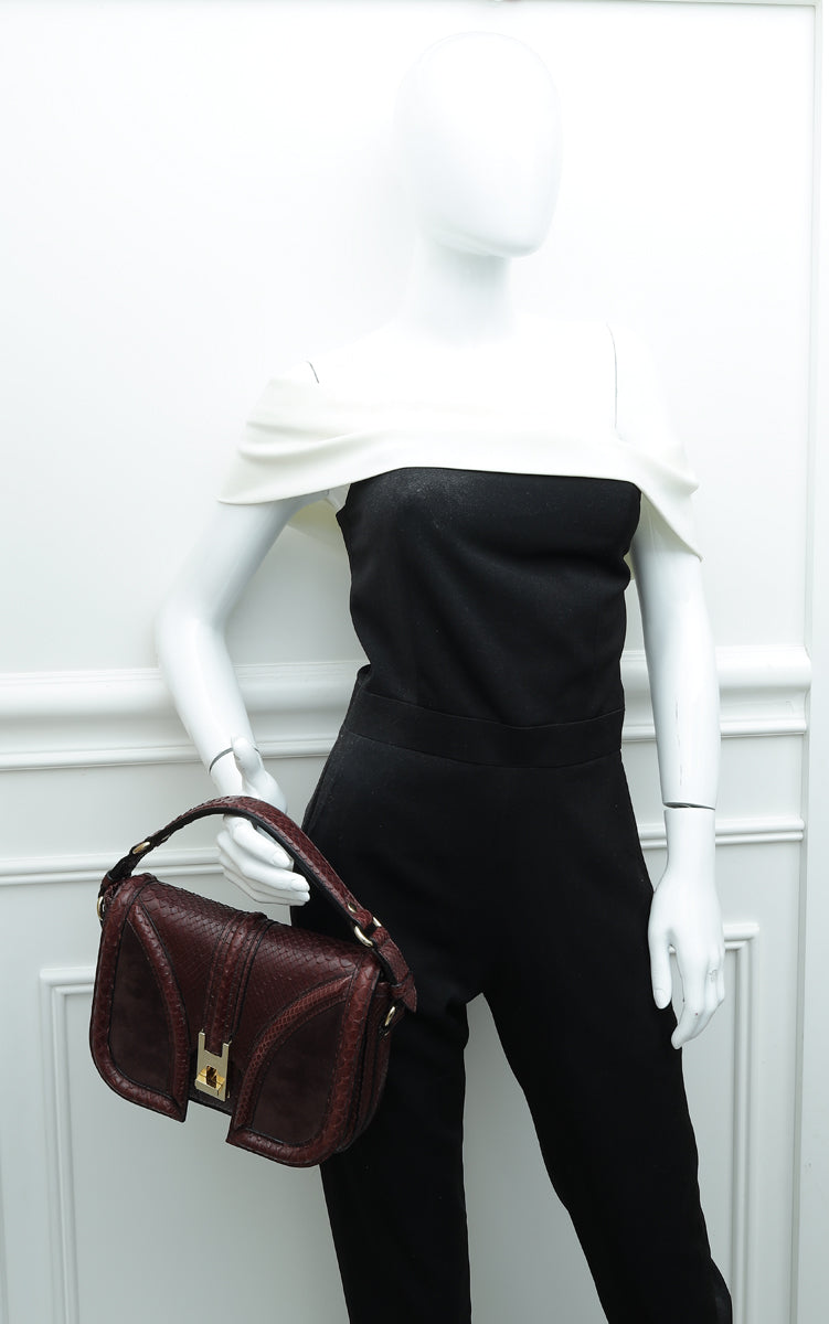 Burberry Reddish Brown Python Suede Brickfield Flap Bag