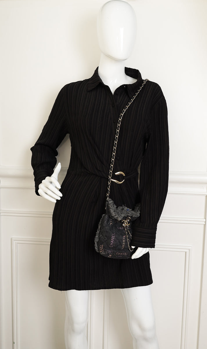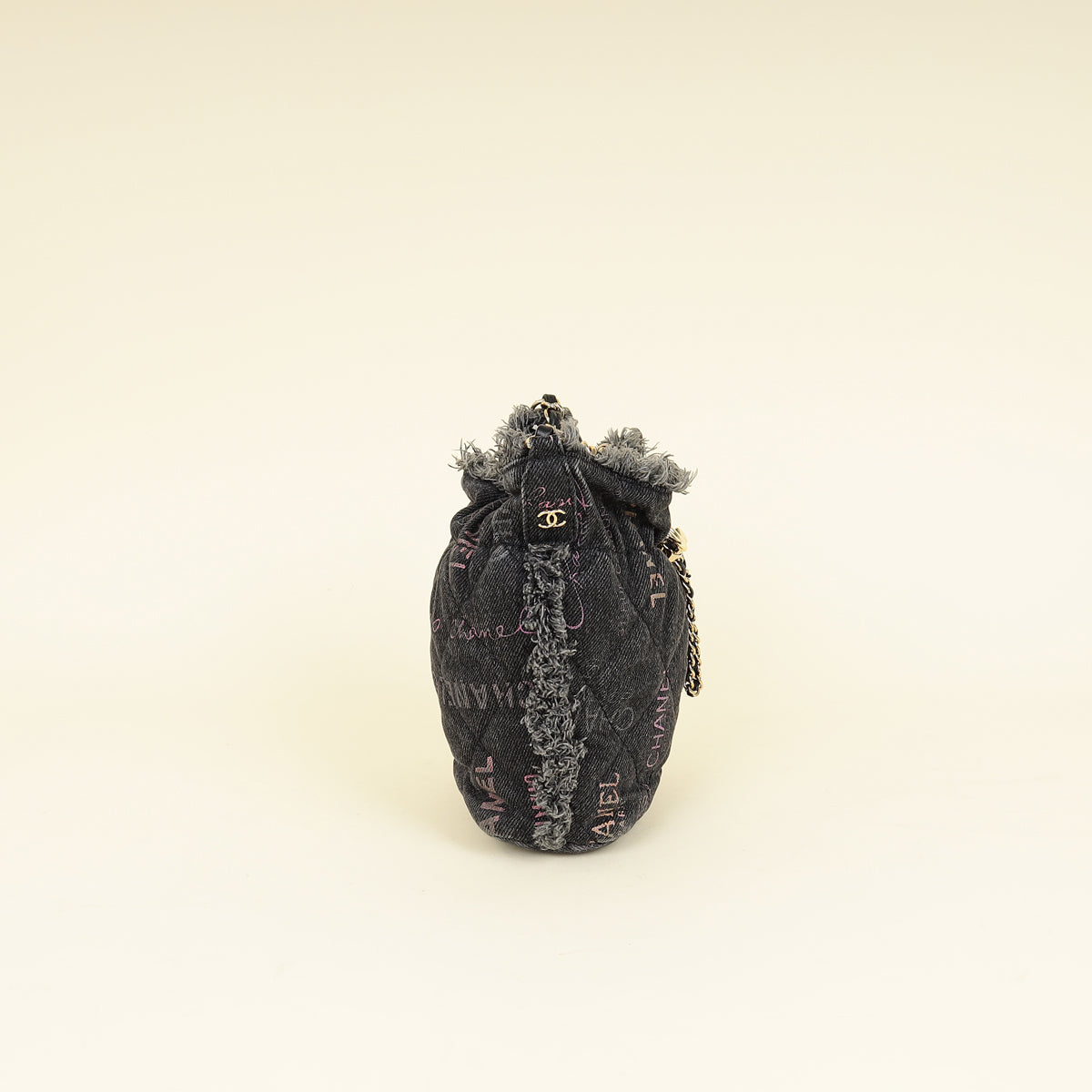 Chanel Black Multicolor CC Denim Quilted Mood Mini Bucket Bag With Chain
