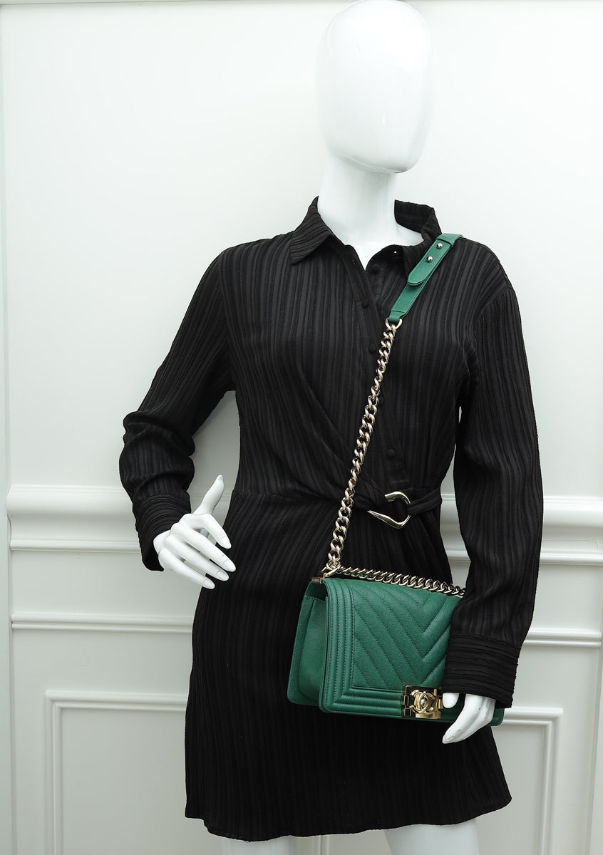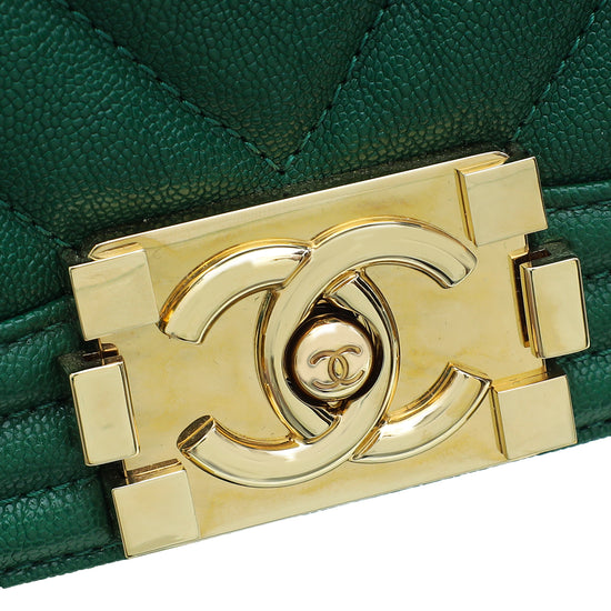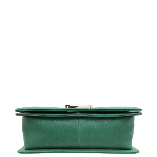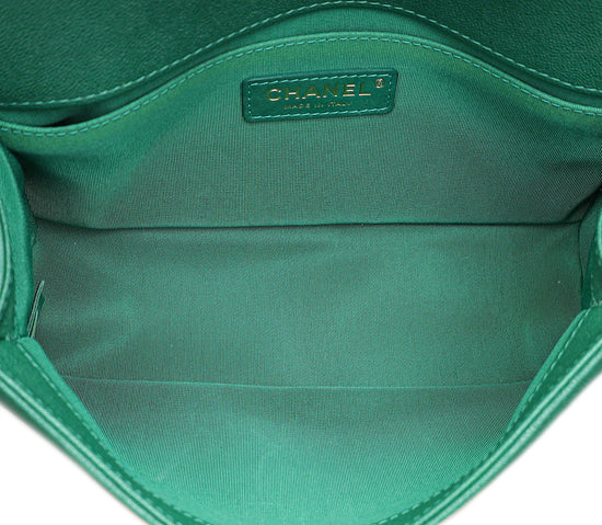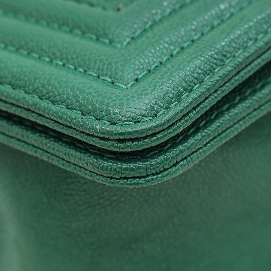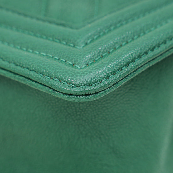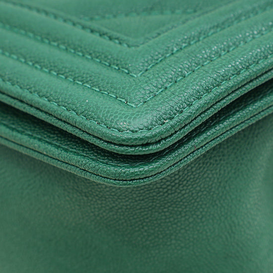 Chanel Green Chevron Le Boy Medium Bag