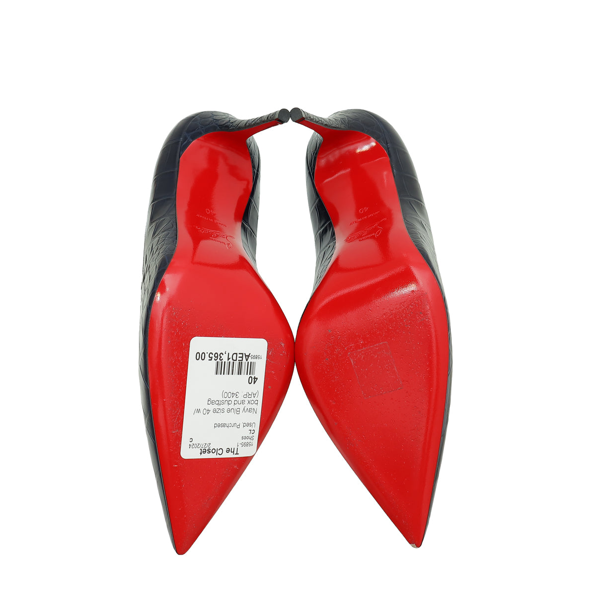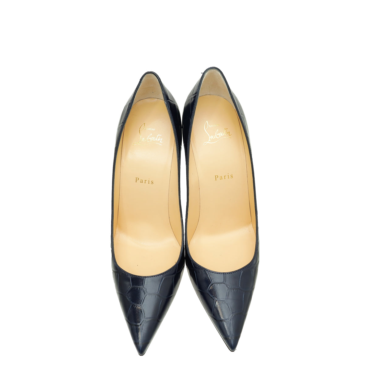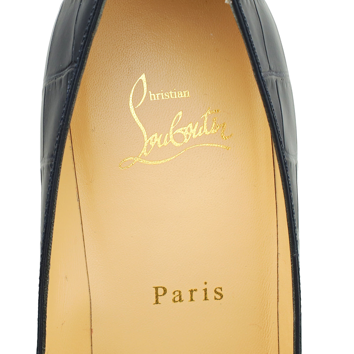 Christian Louboutin Navy Blue Croco-Embossed Kate 110mm Pump 40