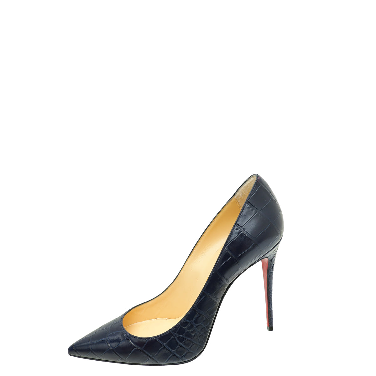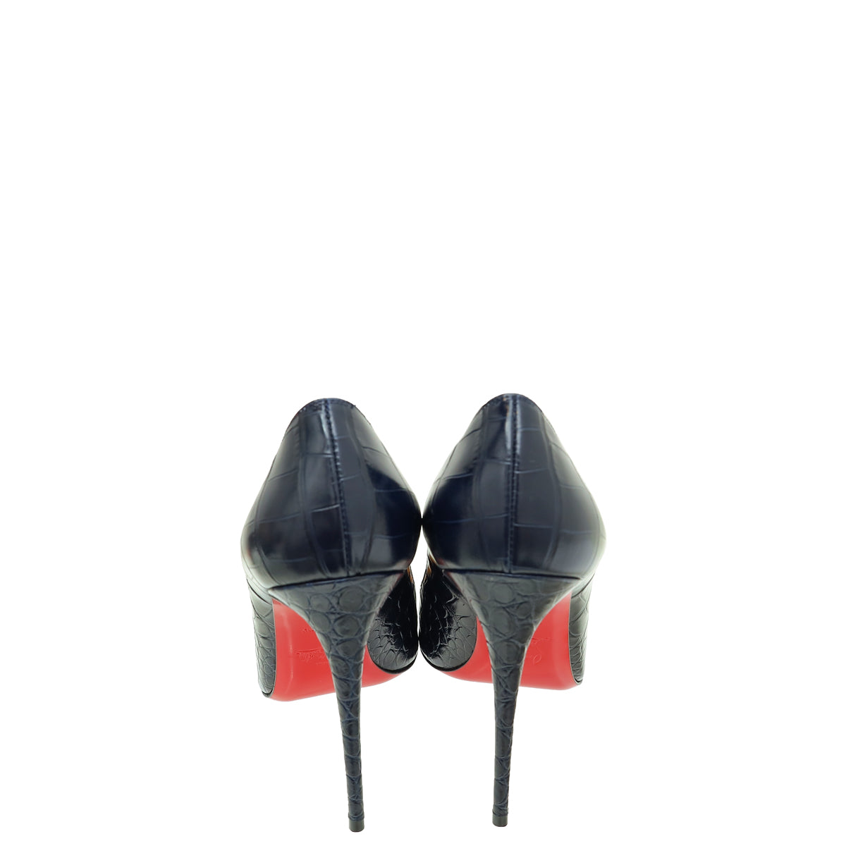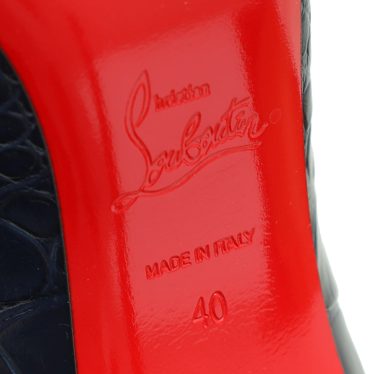 Christian Louboutin Navy Blue Croco-Embossed Kate 110mm Pump 40