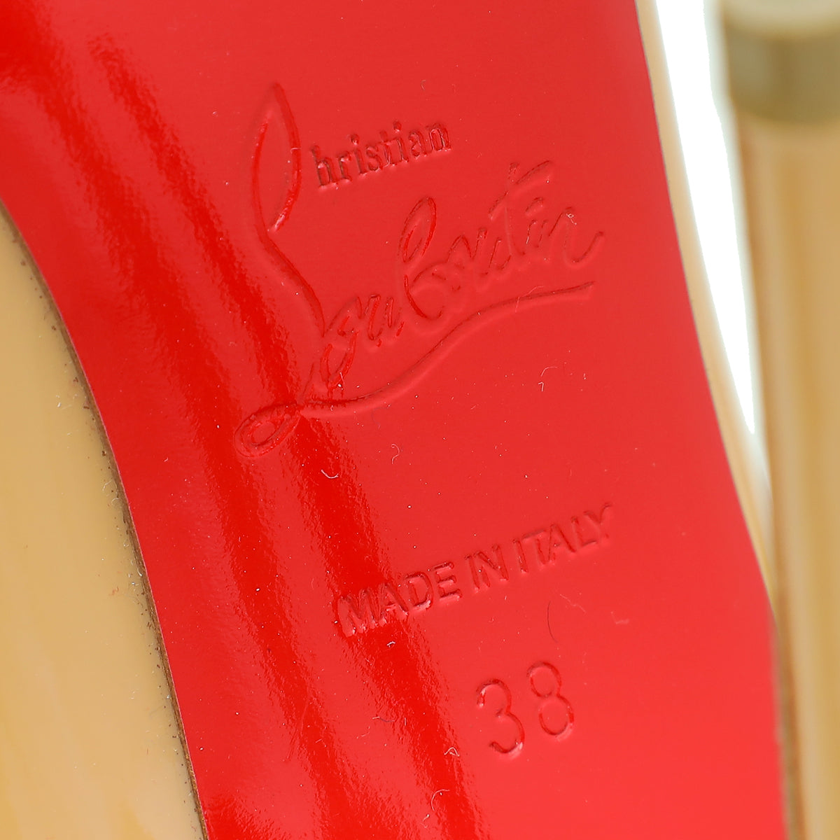 - Material: Nude Patent Leather