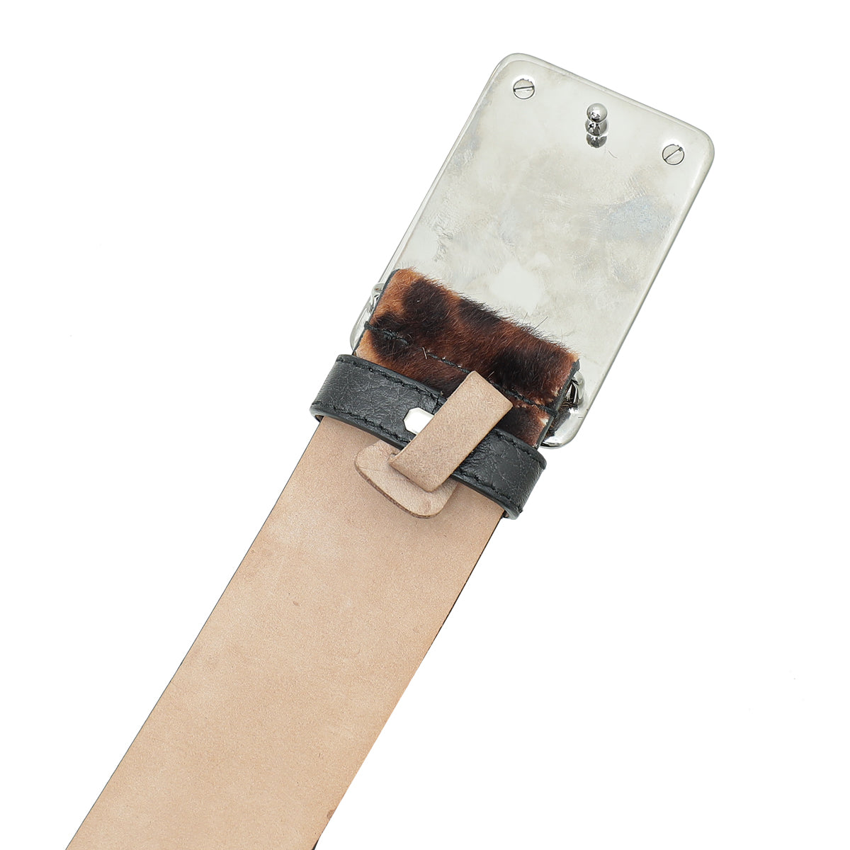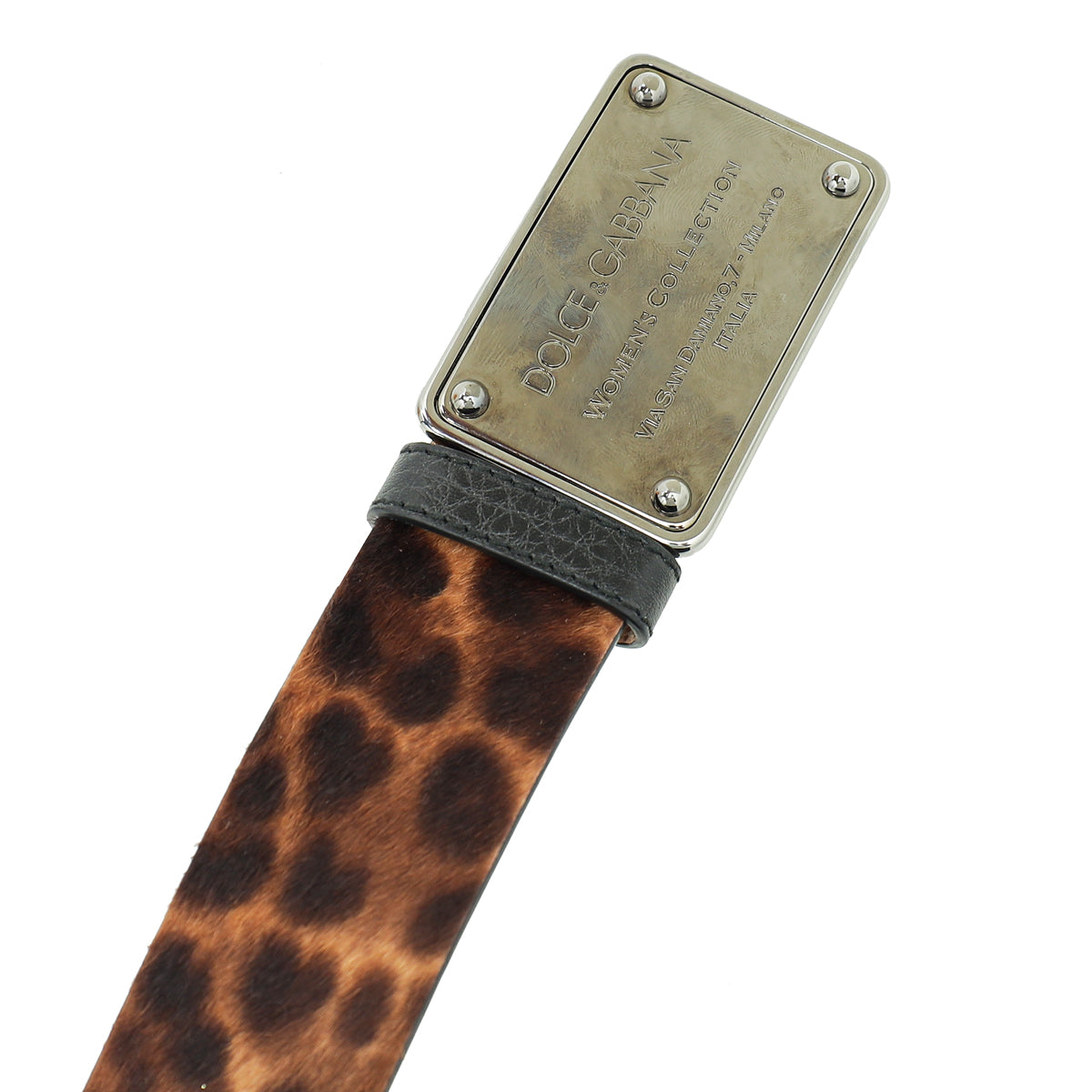 Dolce & Gabbana Brown Leopard Print Calf Hair Logo Plaque Belt 36-Dolce & Gabbana-THE CLOSET
