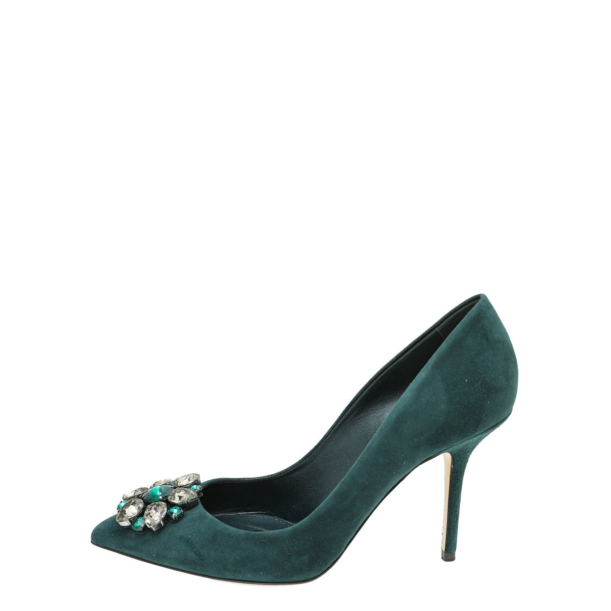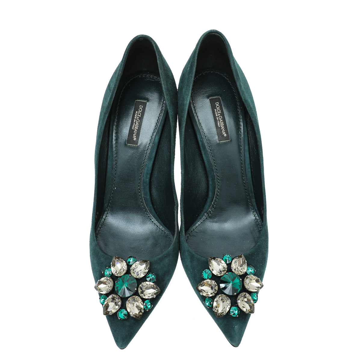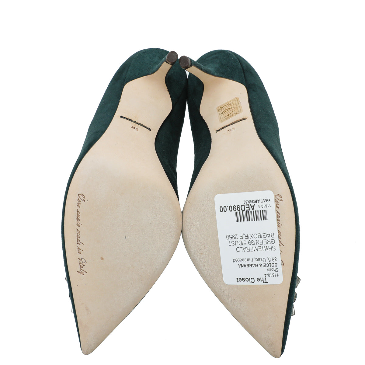 Dolce & Gabbana Emerald Green Suede Bellucci Crystal Pump 39.5