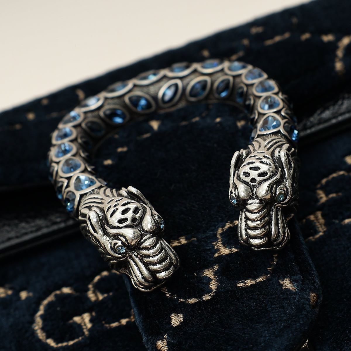 Material: Navy Blue GG Velvet with Leather Trim and Tiger Head with Crystals