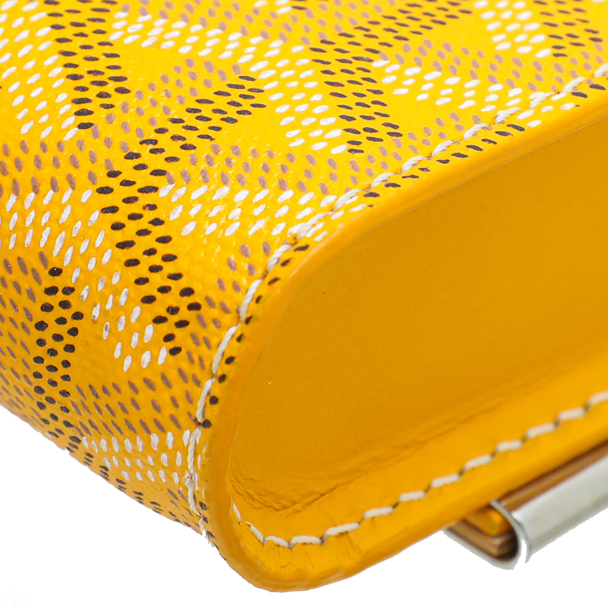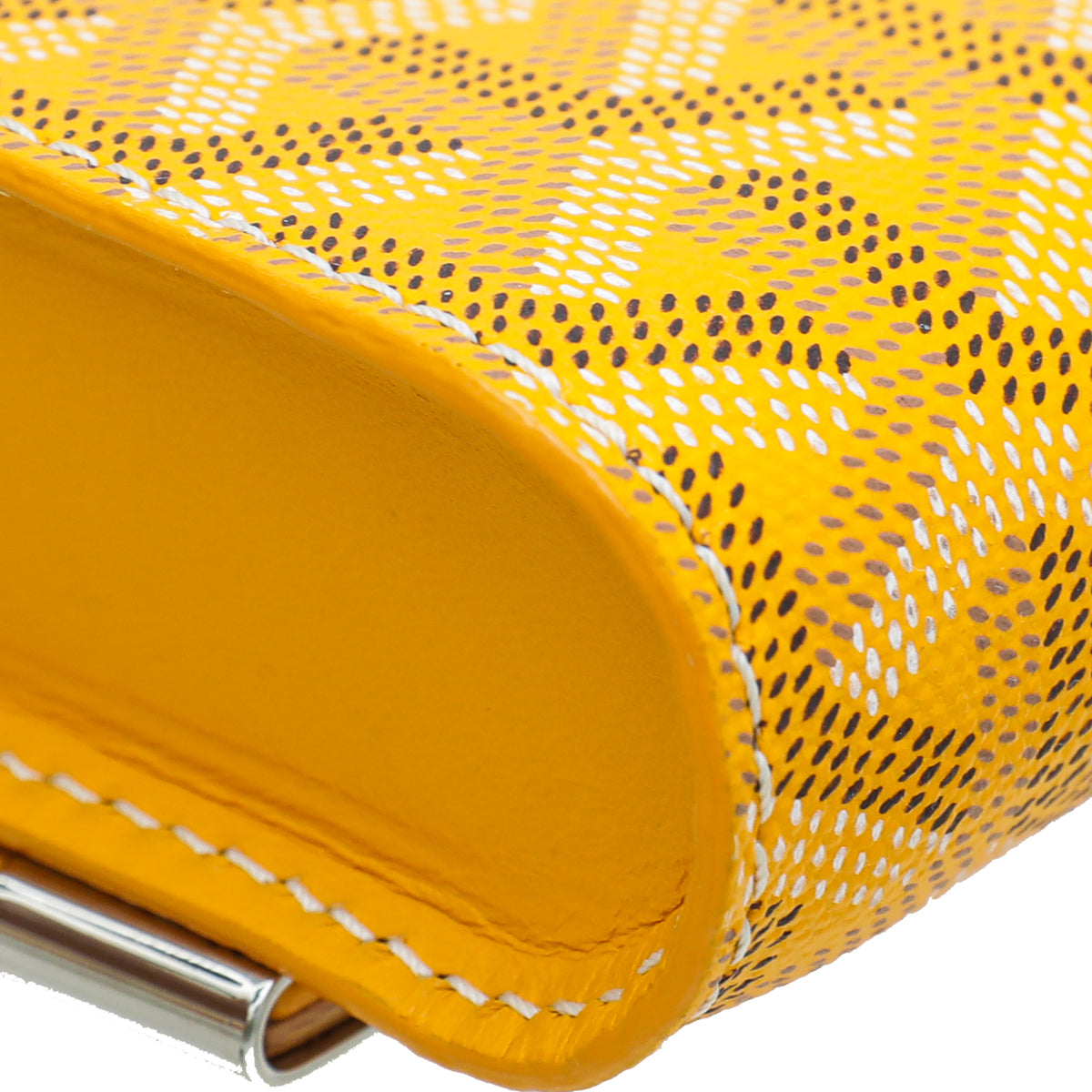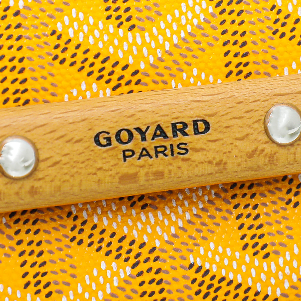 Material: Yellow Goyardine Chevron Coated Canvas with Leather and Wood Trim