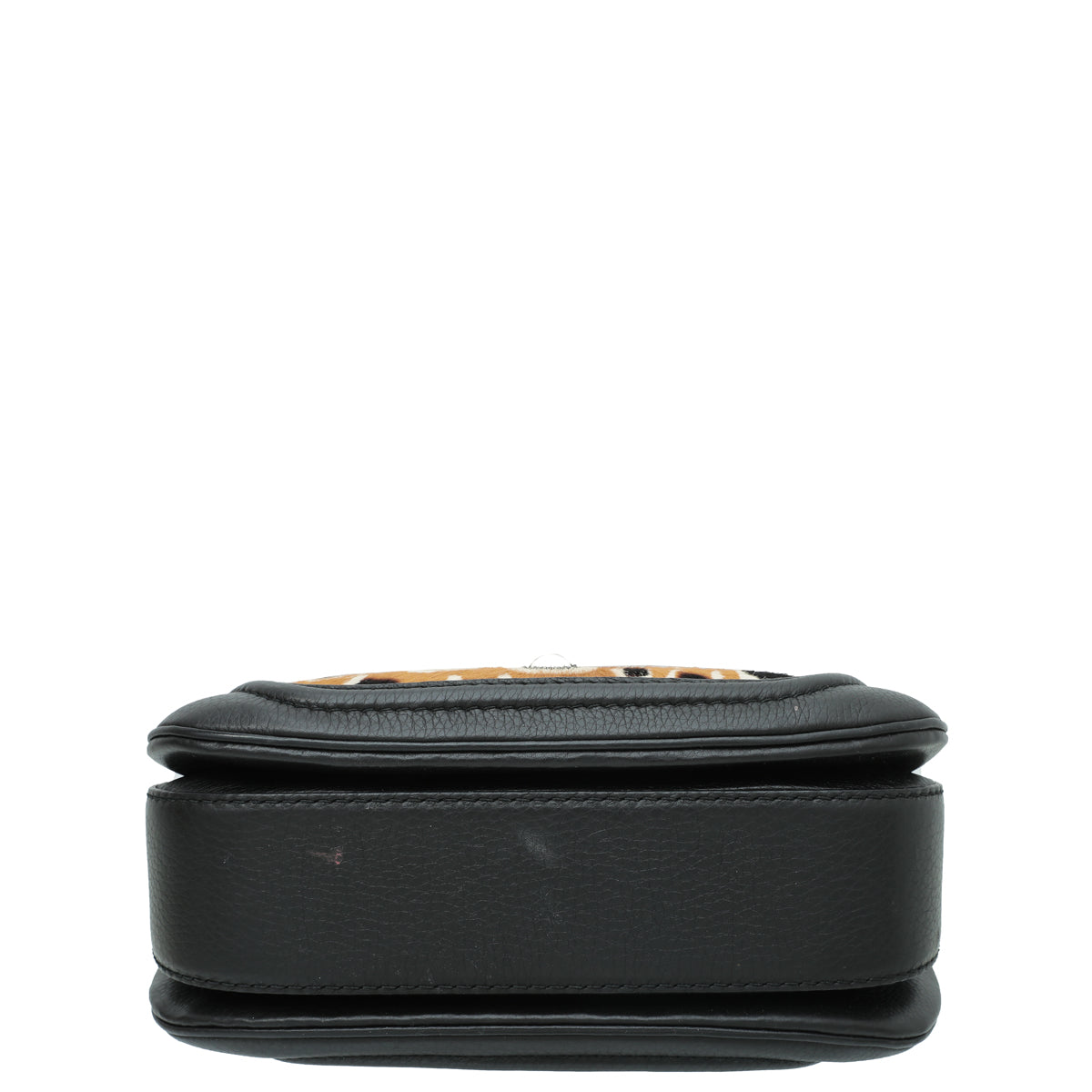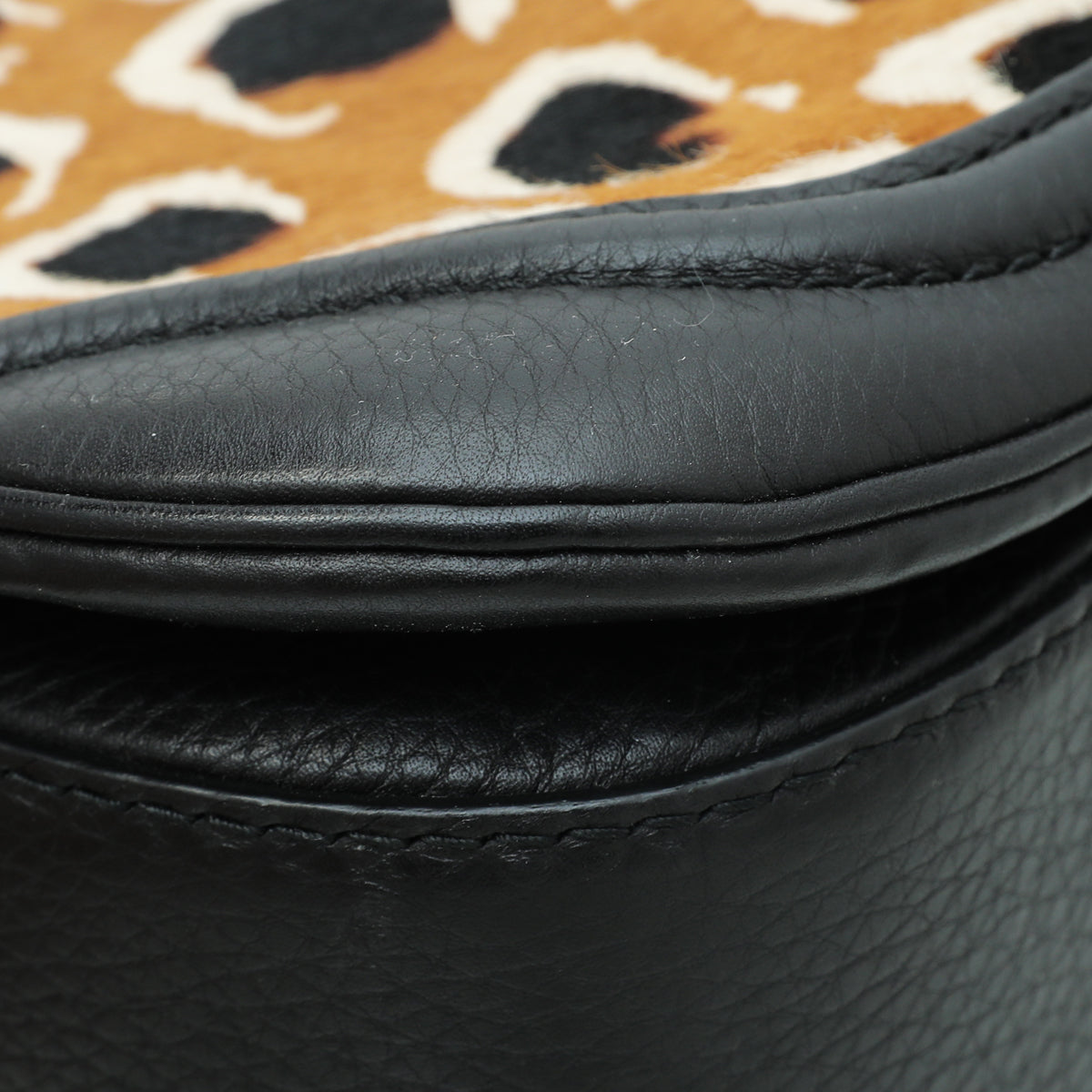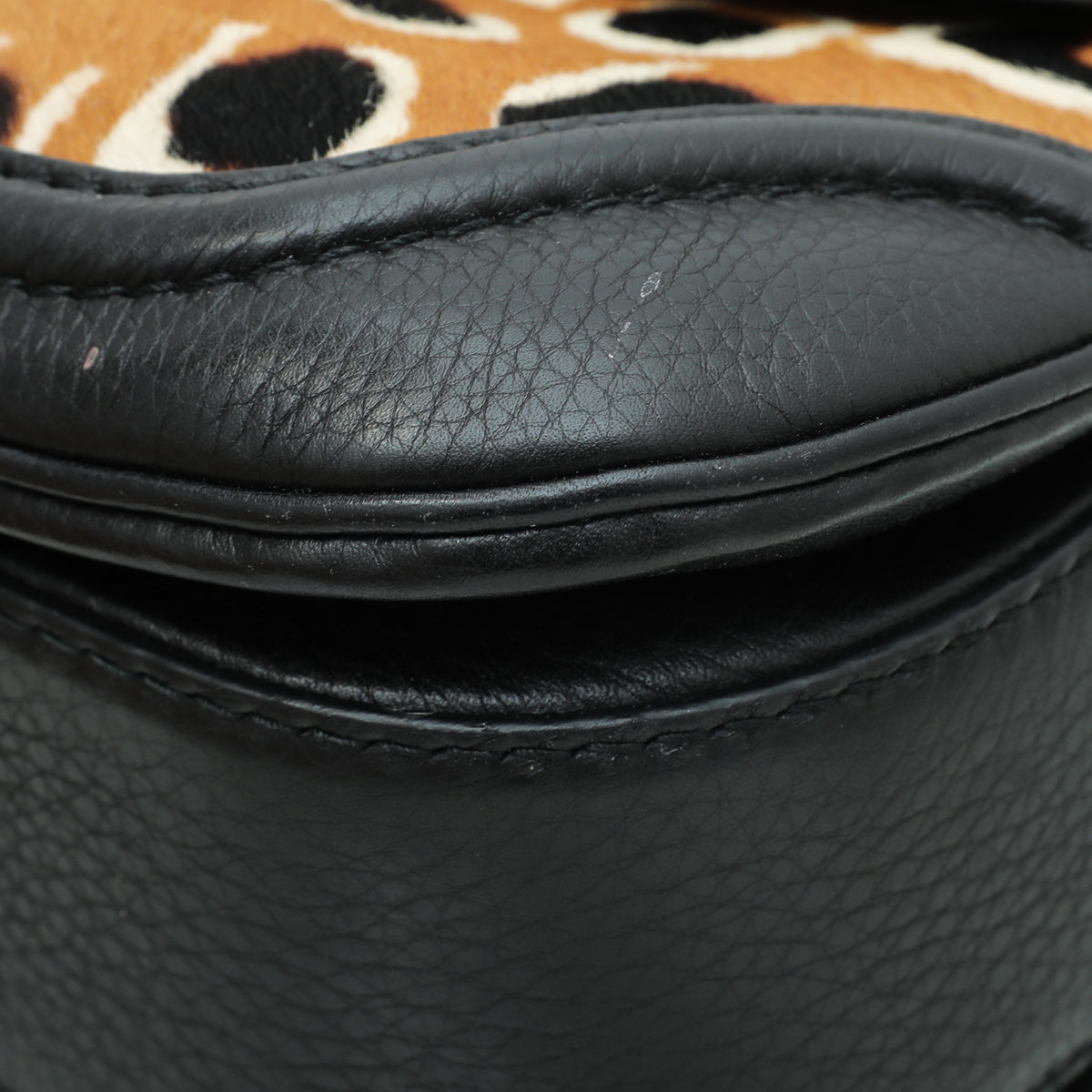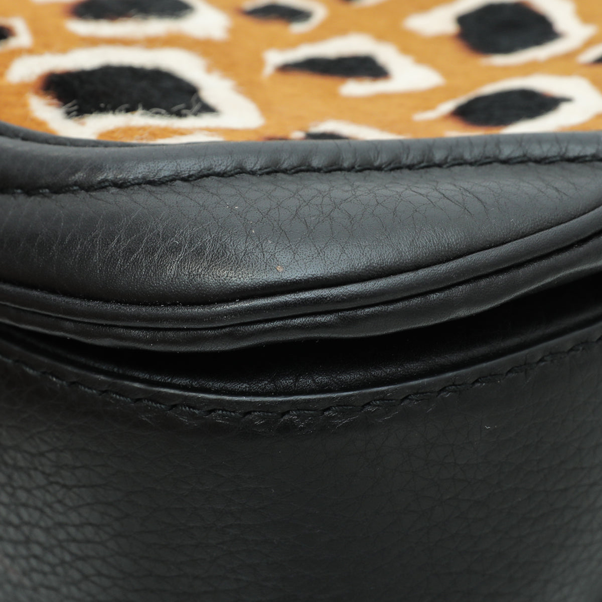 Material: Brown Leopard Print Calf Hair and Black Leather Trim