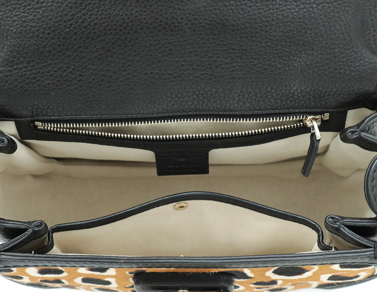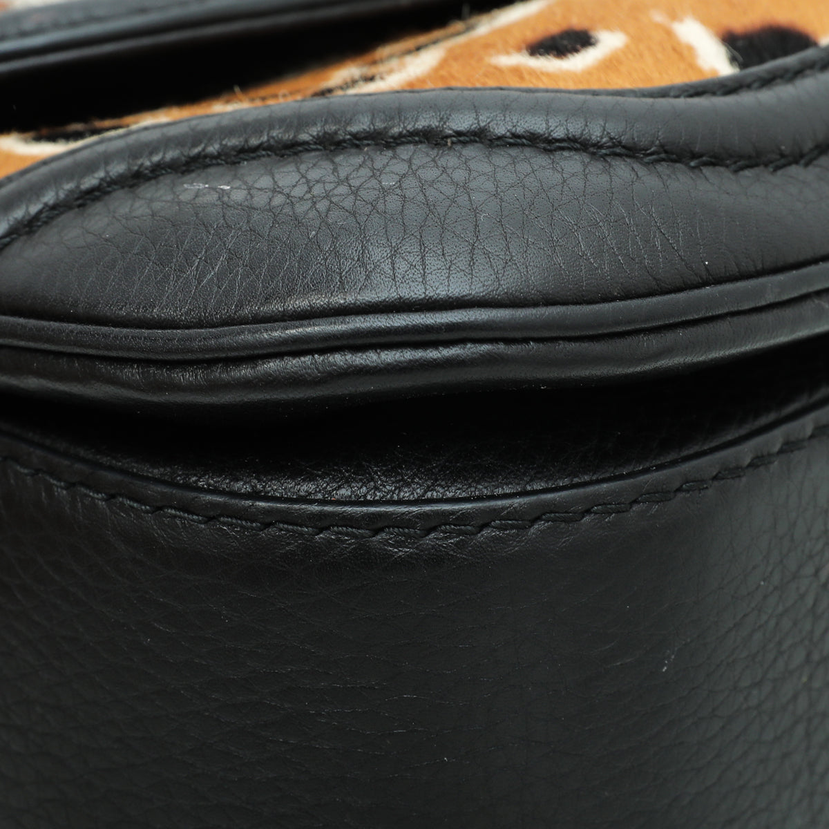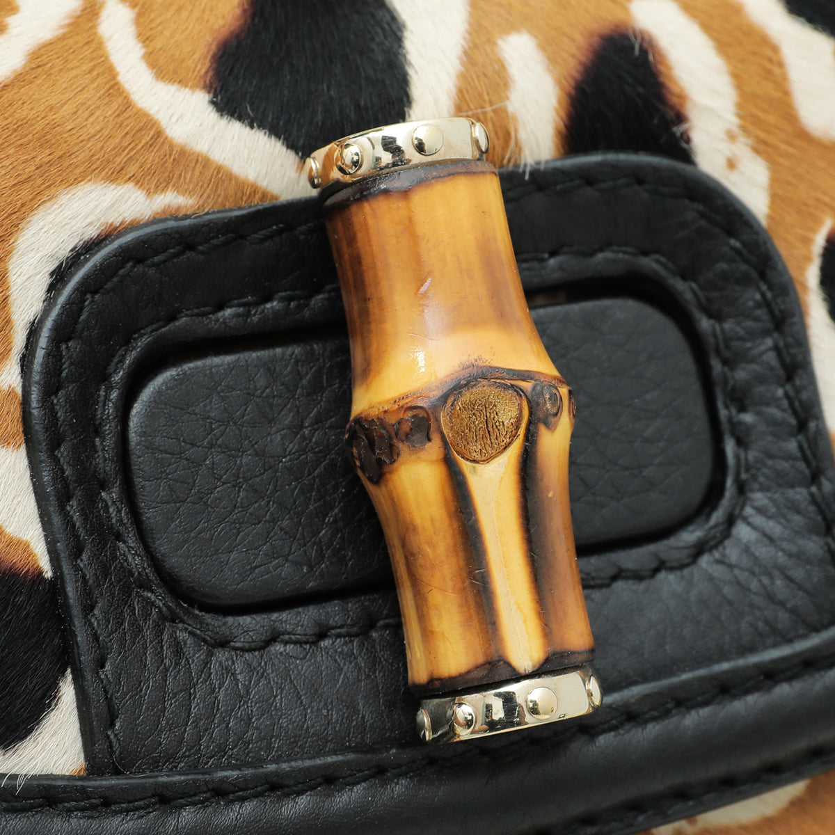 Gucci Bicolor Calf Hair Leopard Print New Bamboo Top Handle Medium Bag