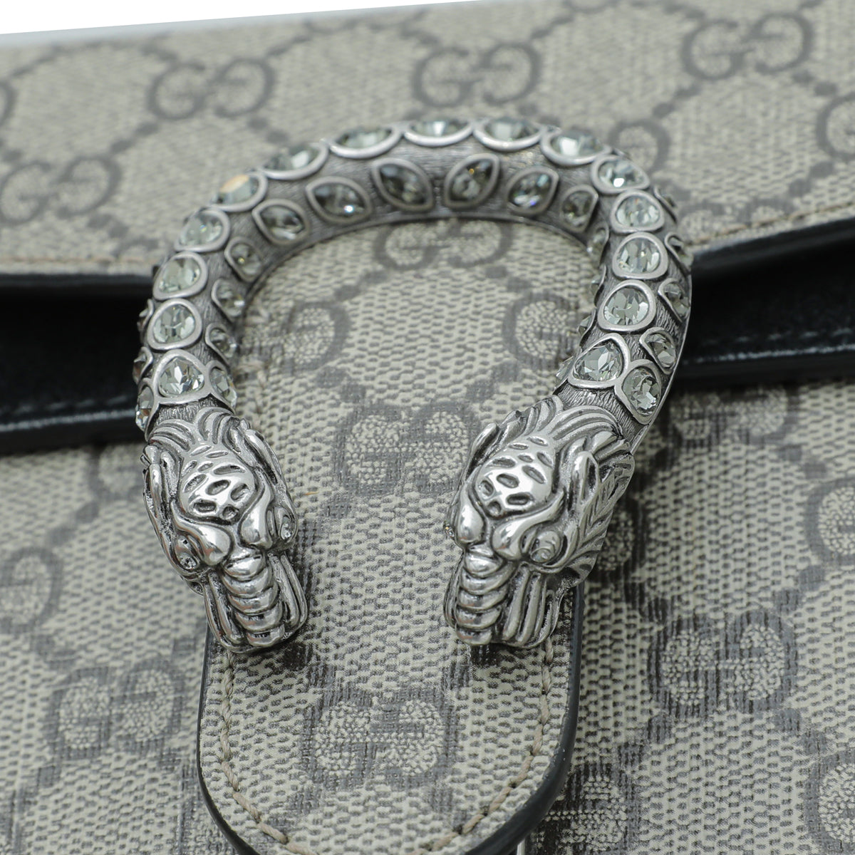 Material: Ebony GG Supreme Canvas with Black Suede Trim and Tiger Head Closure with Crystals