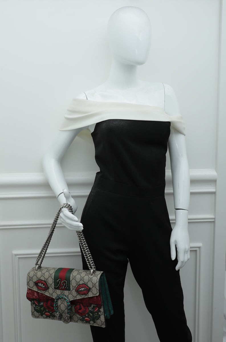 Gucci Ebony Multicolor Crystal Sequins Embroidered Personalized Small Dionysus Bag