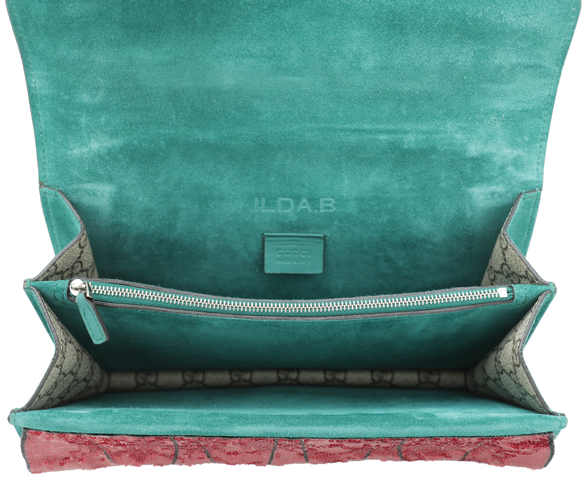 Material: Ebony GG Supreme Canvas with Multicolor Sequins, Green/Red Web, Floral, Crystals and Suede Trim