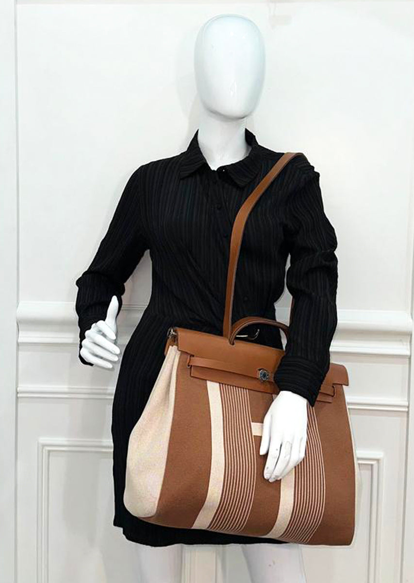 Hermes Bicolor Herbag 39 GM Retourne Toile Plume H Hunter Bag
