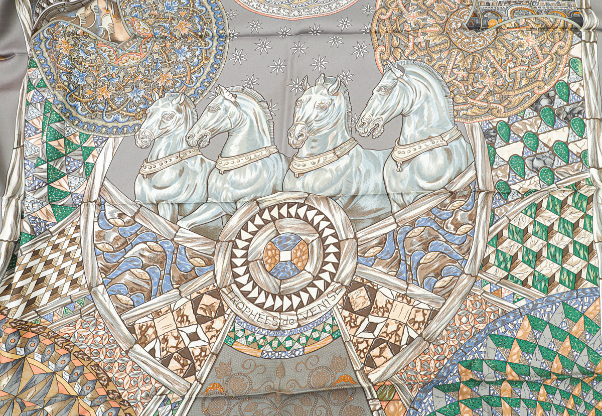 Hermes Grey Multicolor Silk Trophees de Venise Silk Scarf