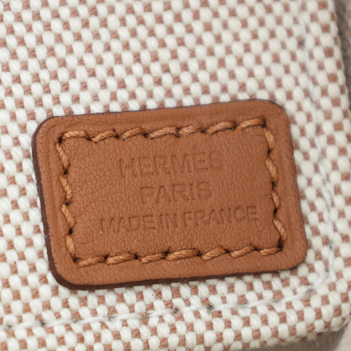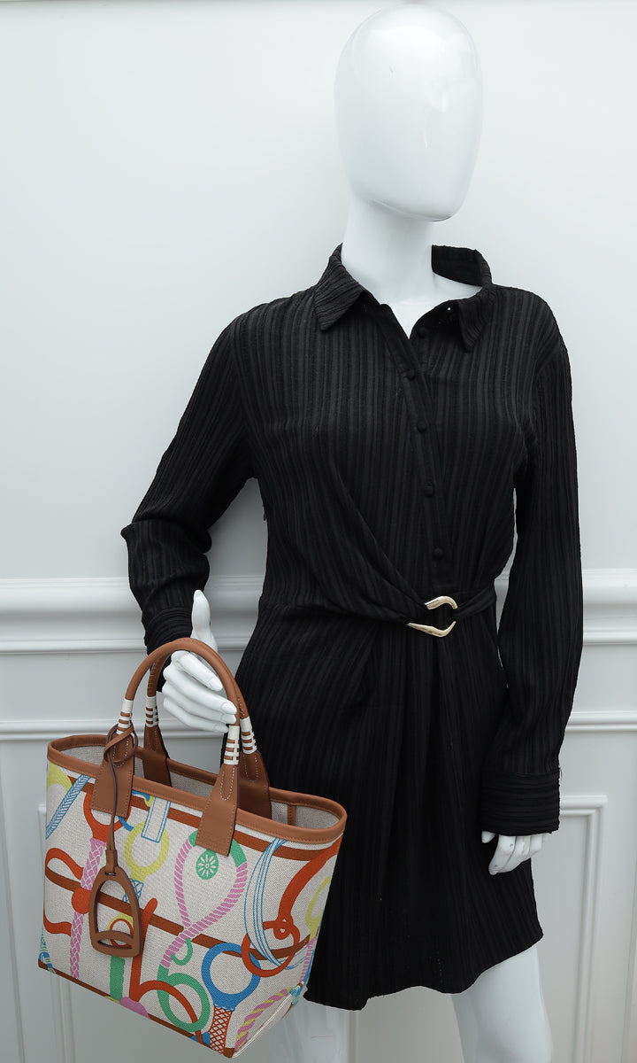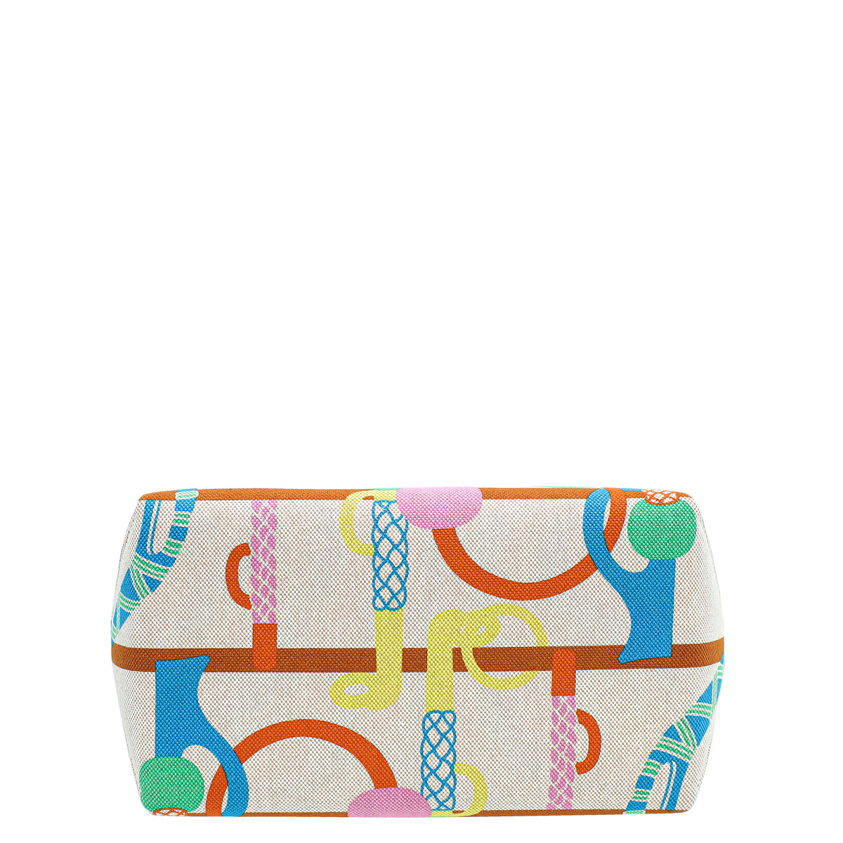 Material: Cuivre/Lime/Écru/Beige/Gold Canvas & Swift Calfskin Leather with "Clic Clac Panoplie Equestre" Motif, Stirrup Charm & Removable Interior Bottom Pad