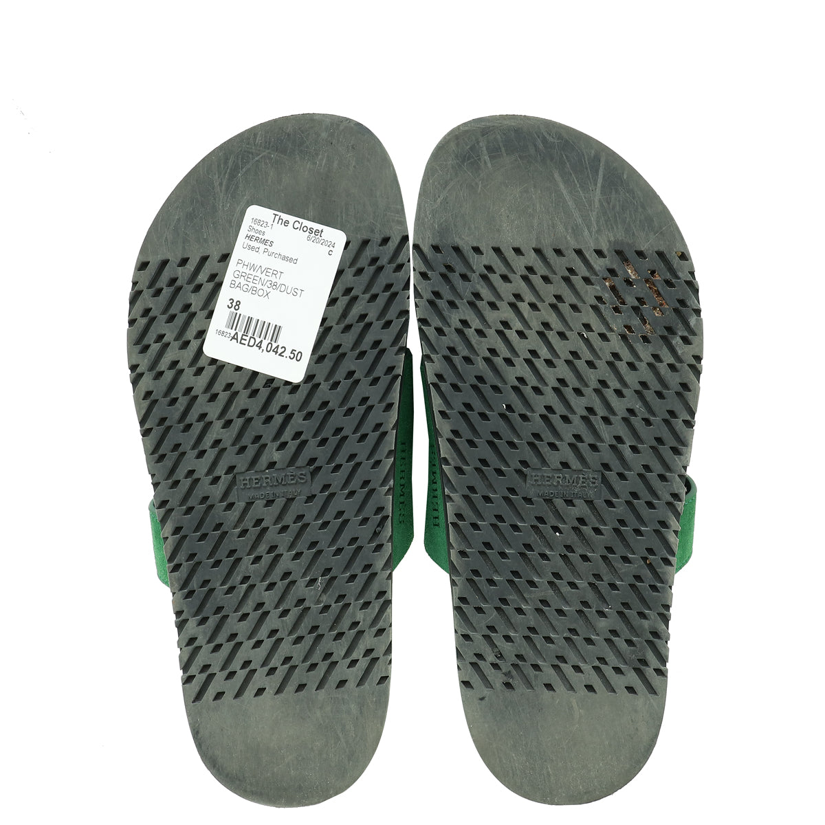 Hermes Vert Green Suede Goatskin Chypre Sandal 38