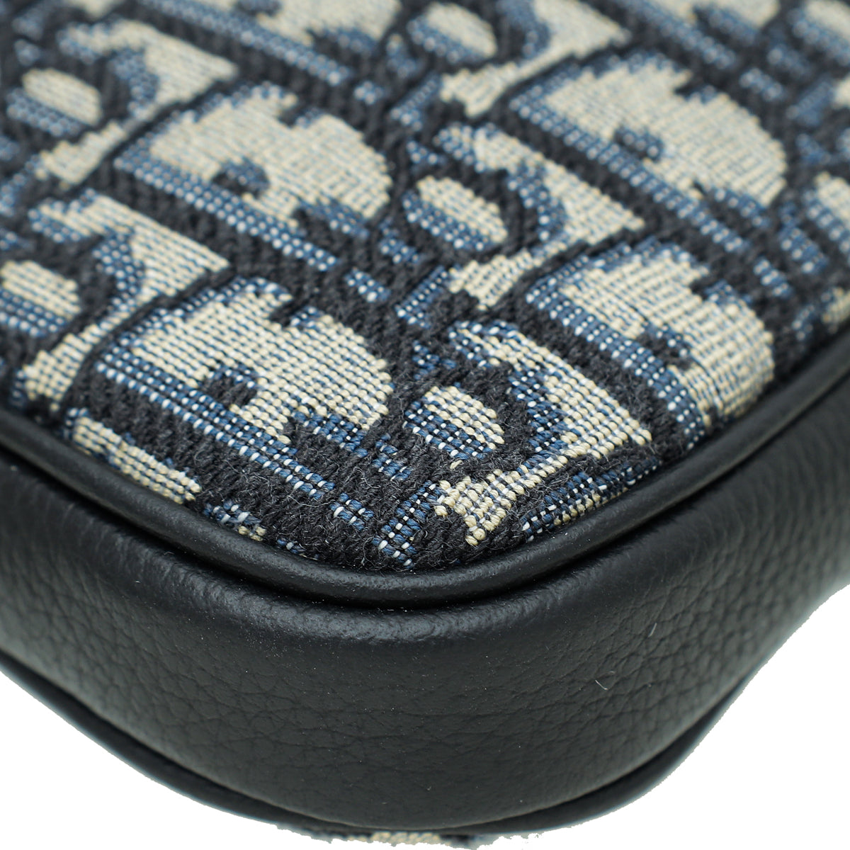 Material: Navy Blue Oblique Jacquard with Leather Trim