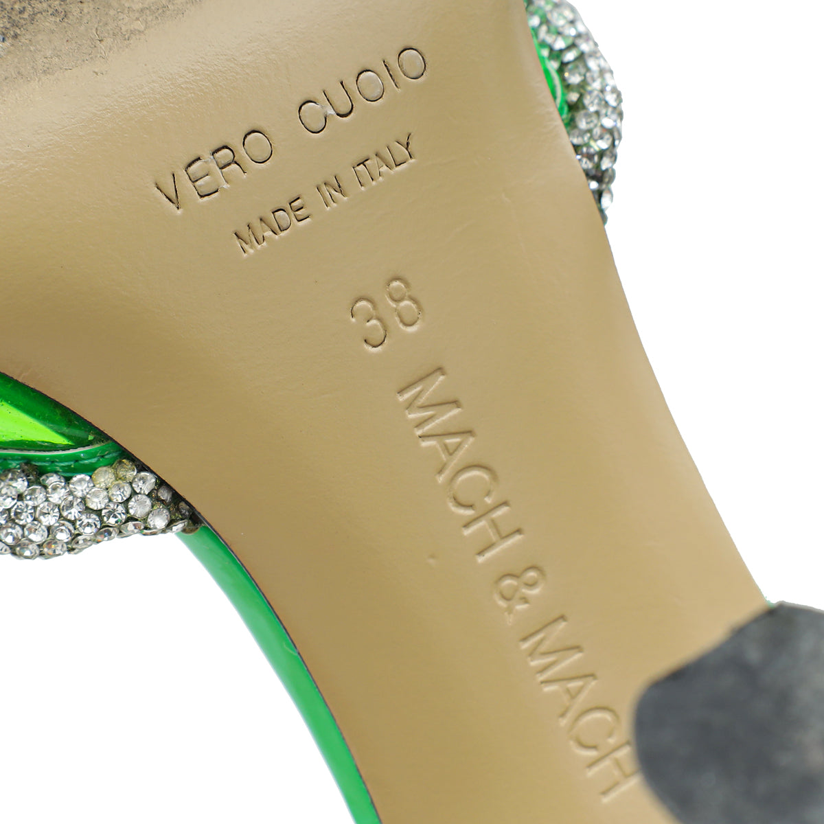 Mach & Mach Green PVC Crystal Bow 110 Pumps 38