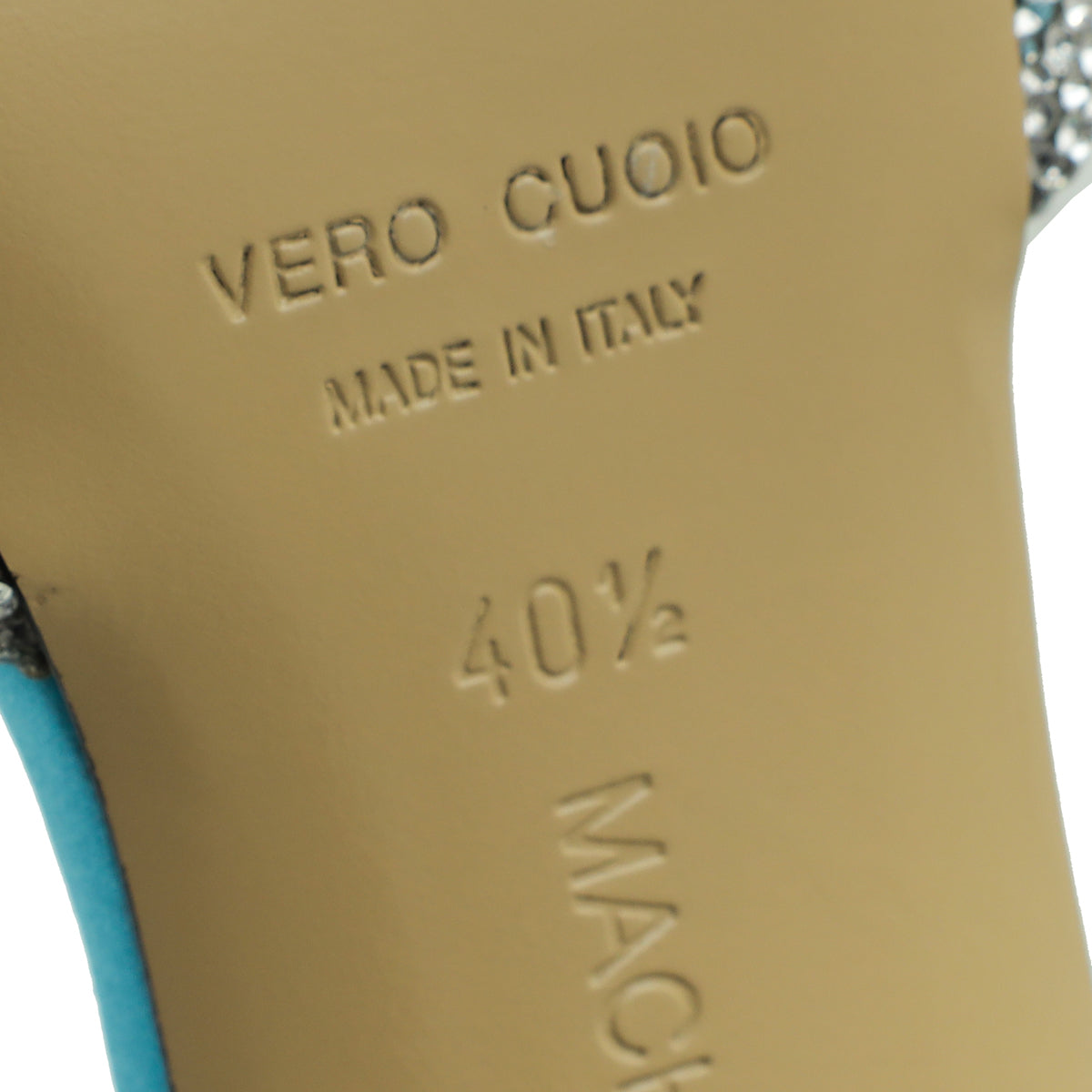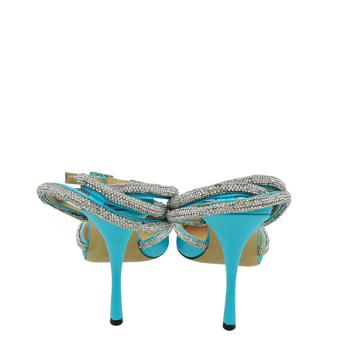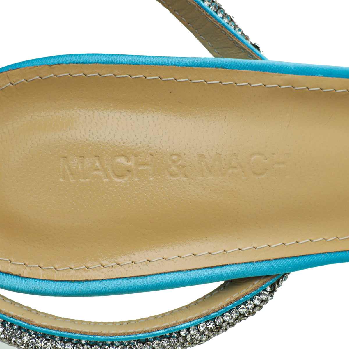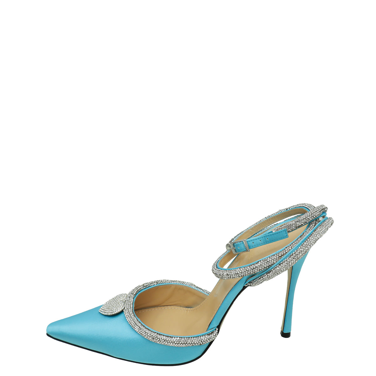 Mach & Mach Light Blue Satin Crystal Heart Embellished Ankle Strap Pumps 40.5