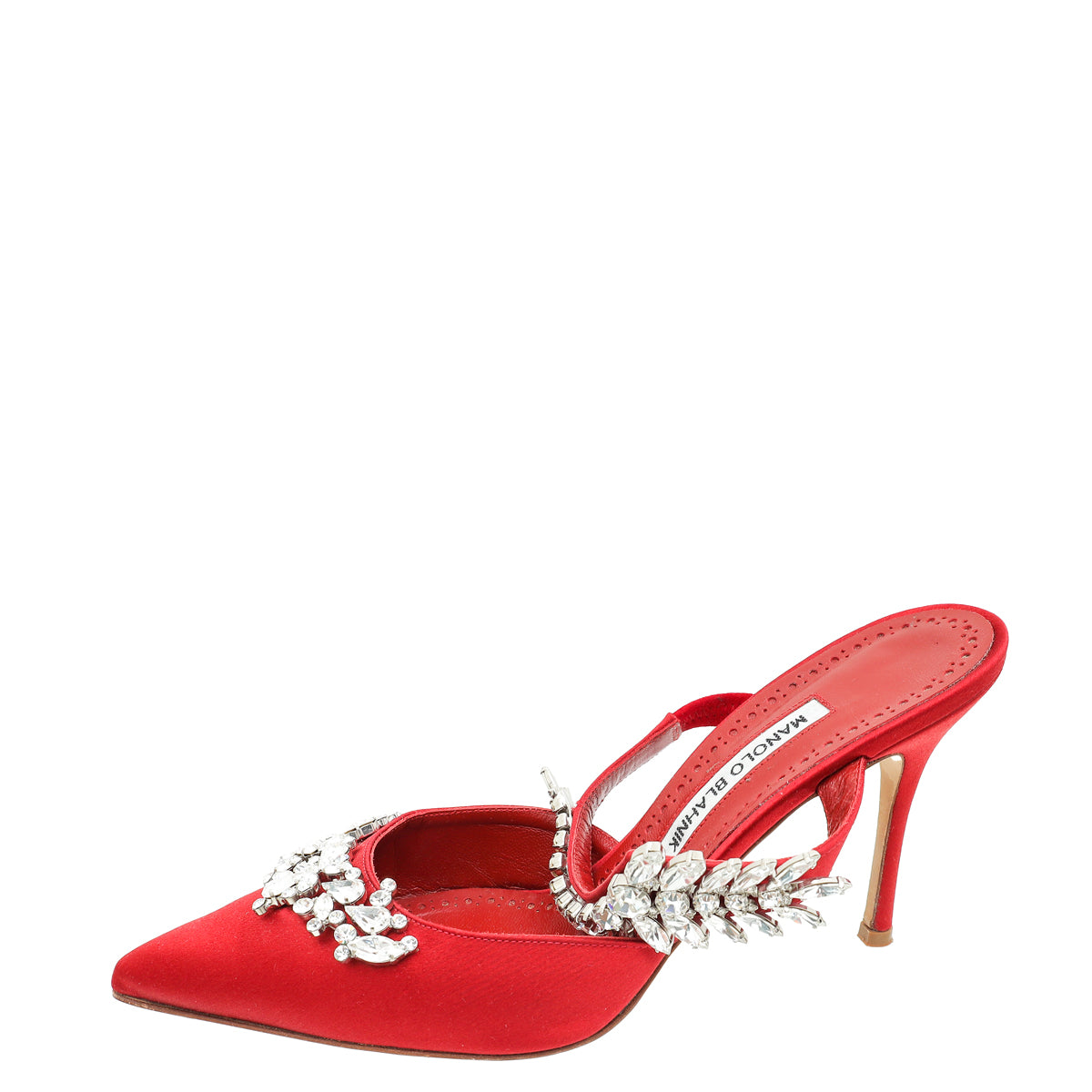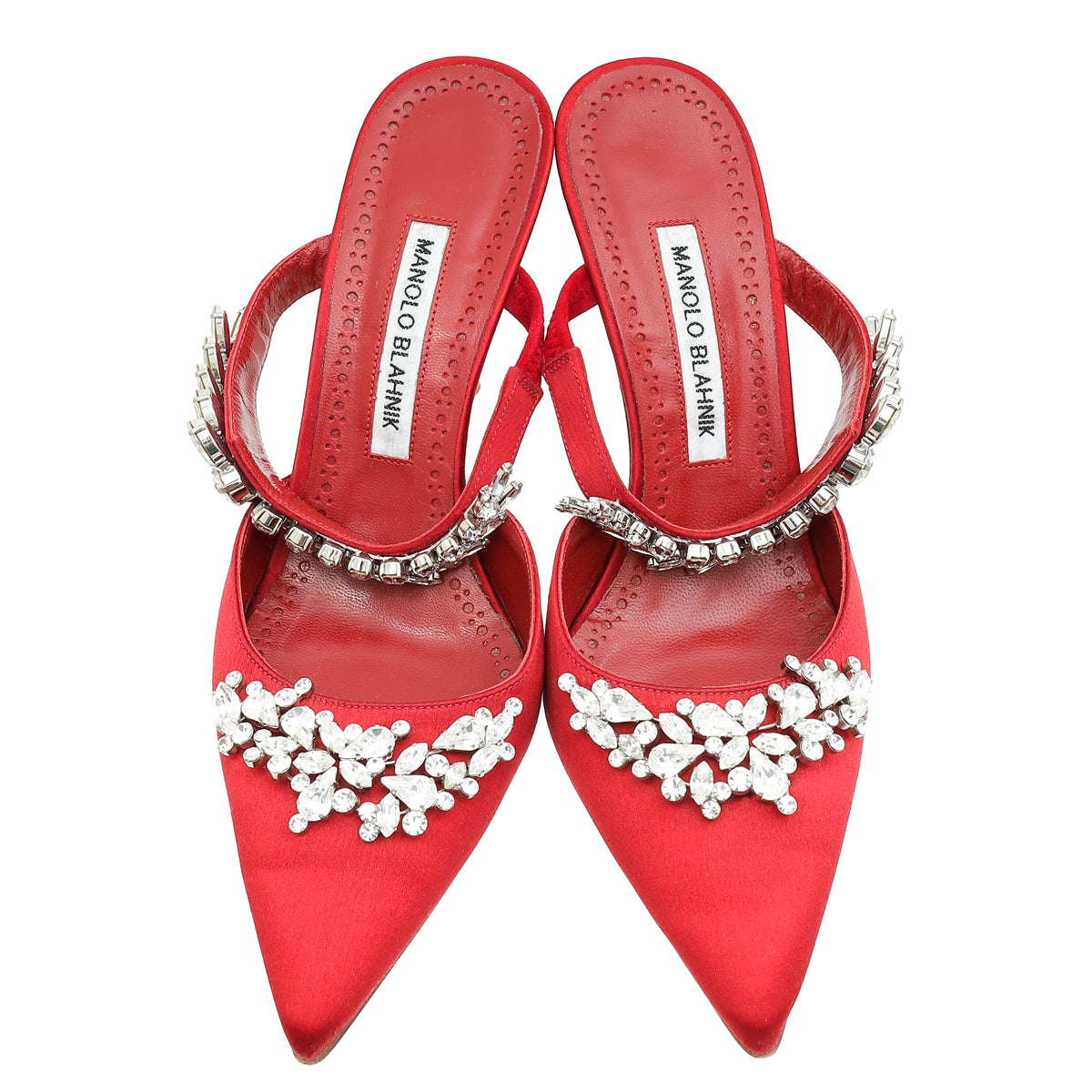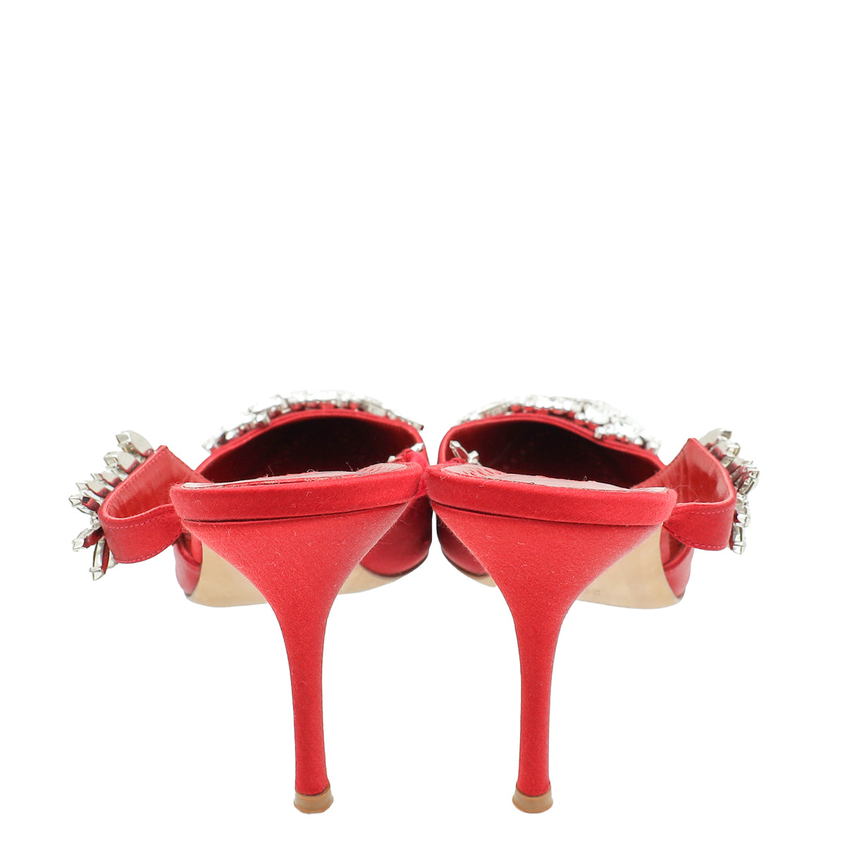 Manolo Blahnik Dark Red Lurum Satin Crystal Slingback Mules 38.5